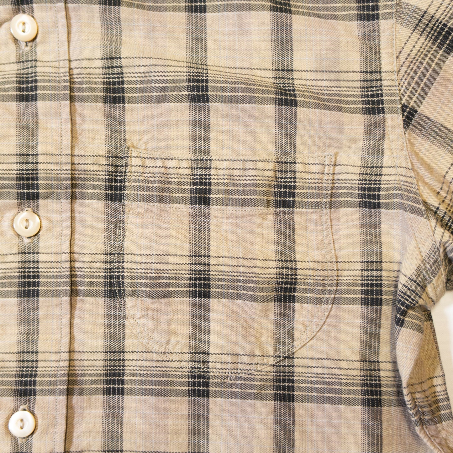This time, it is a calico shirt suitable for midsummer, with a through surge fabric that allows both wind and water to pass through.