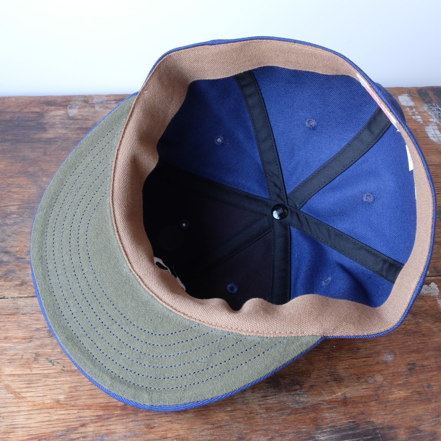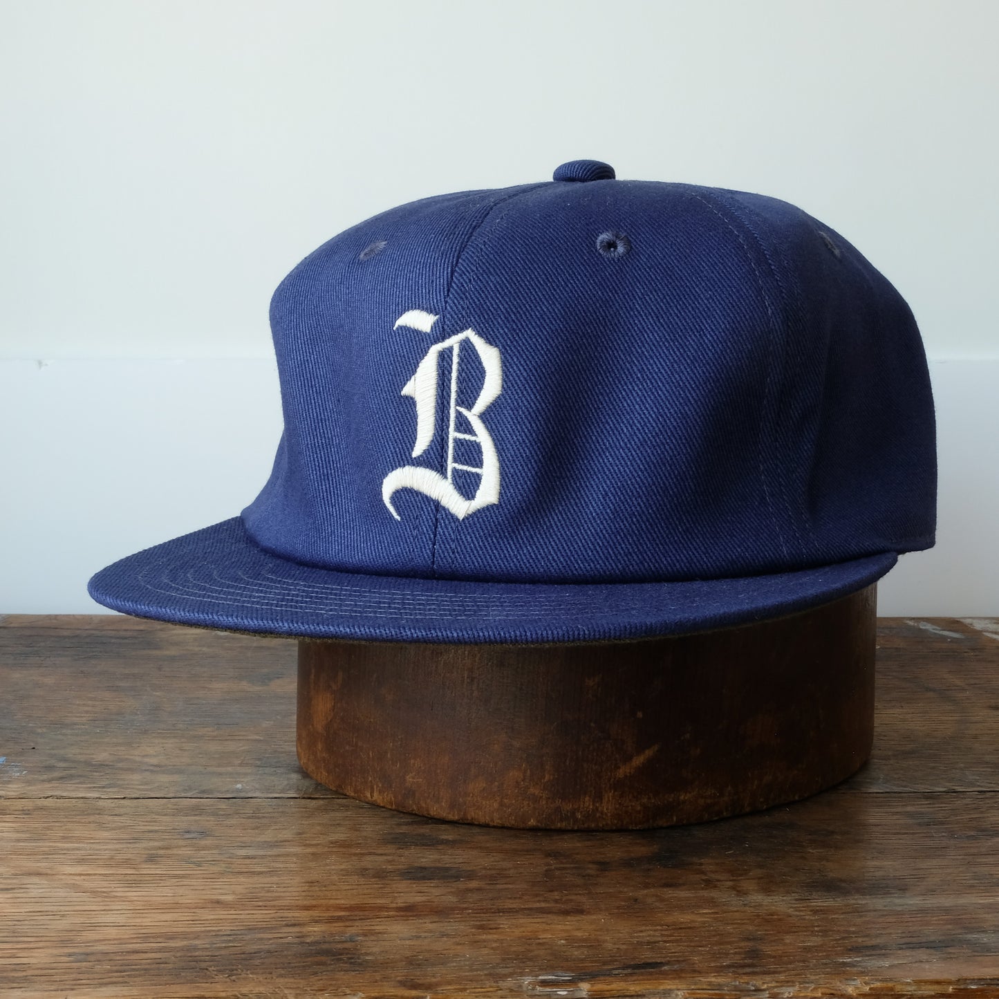 A ball cap based on the style that was mainstream until around the 1940s. It is made of six panels of cotton fabric. The visor is padded. The crown is embroidered with an arranged logo based on the initial letter "B" of the flagship store's name BITTERS.
