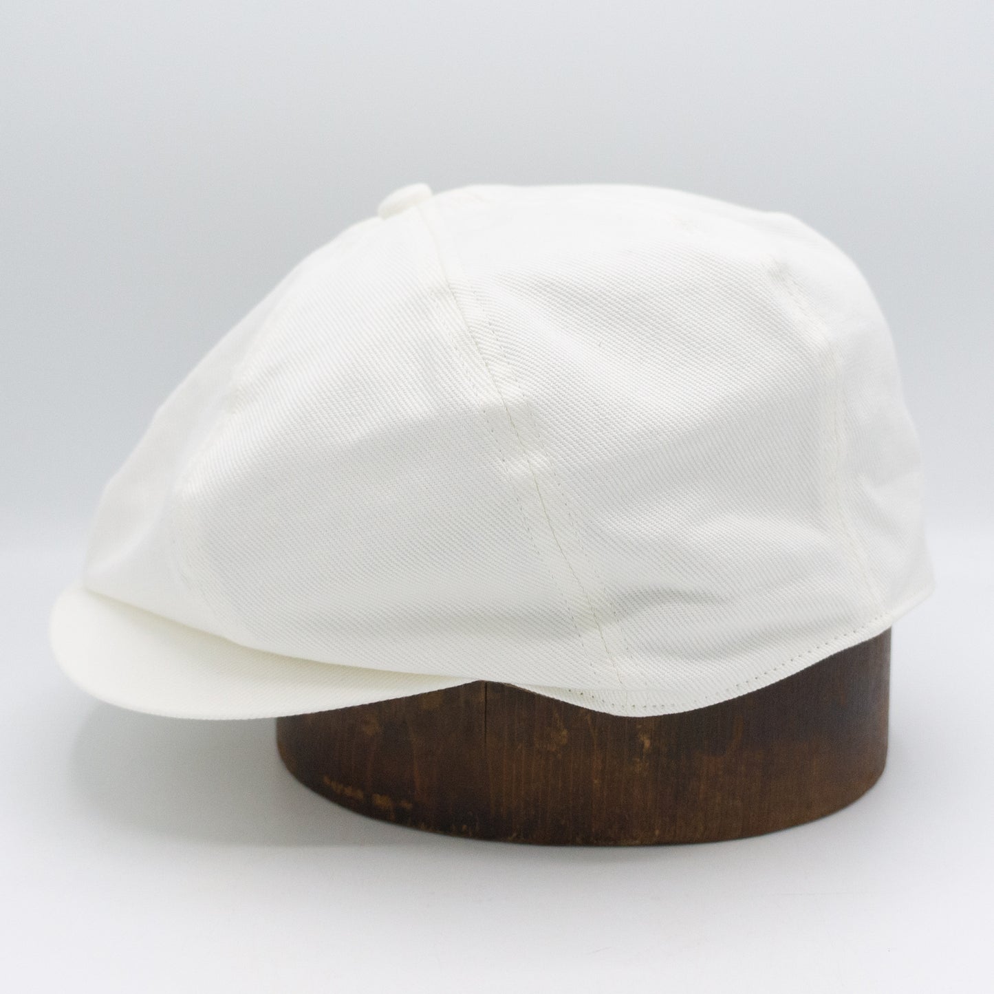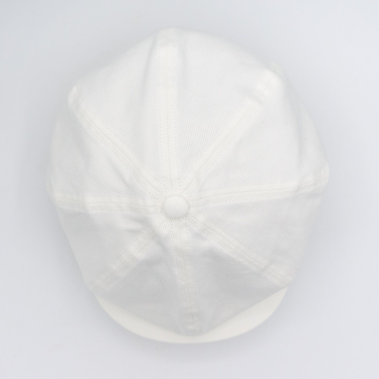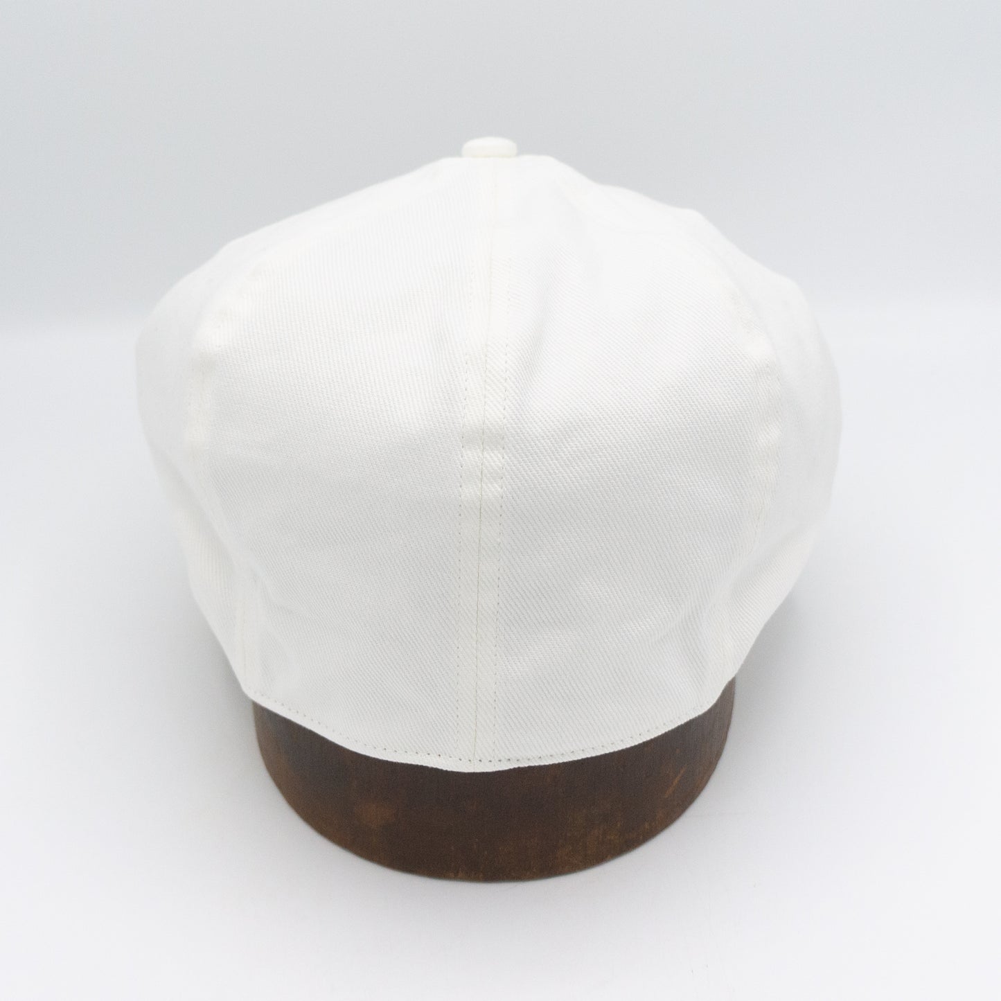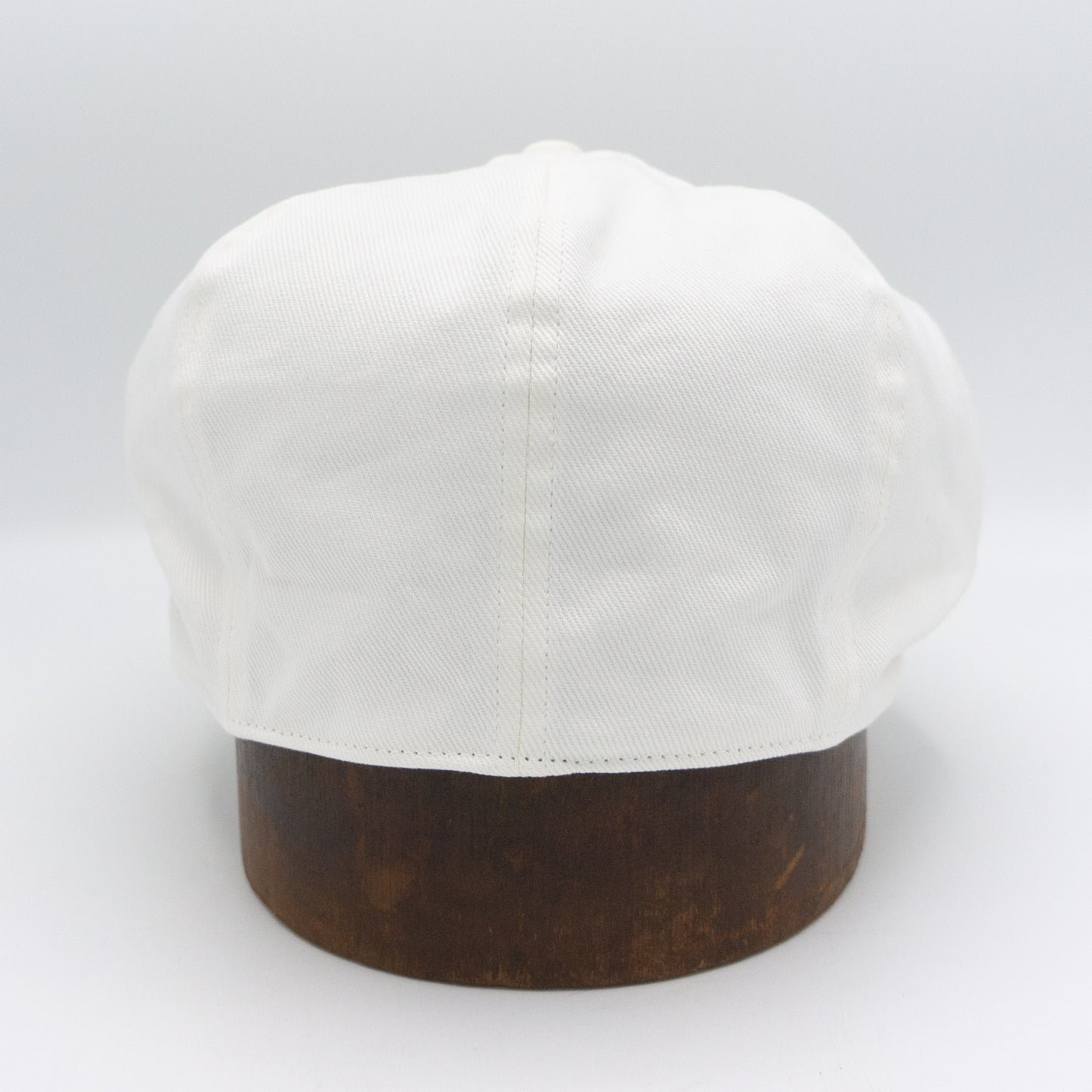 This cap is based on the motif of a 1940s dress cap. It is made of medium-weight cotton twill fabric. The cap at that time had a leather visor, but it has been modified to be made of cotton for comfort and hygiene. It has an inner lining. It has 8 panels. The visor has a soft core.