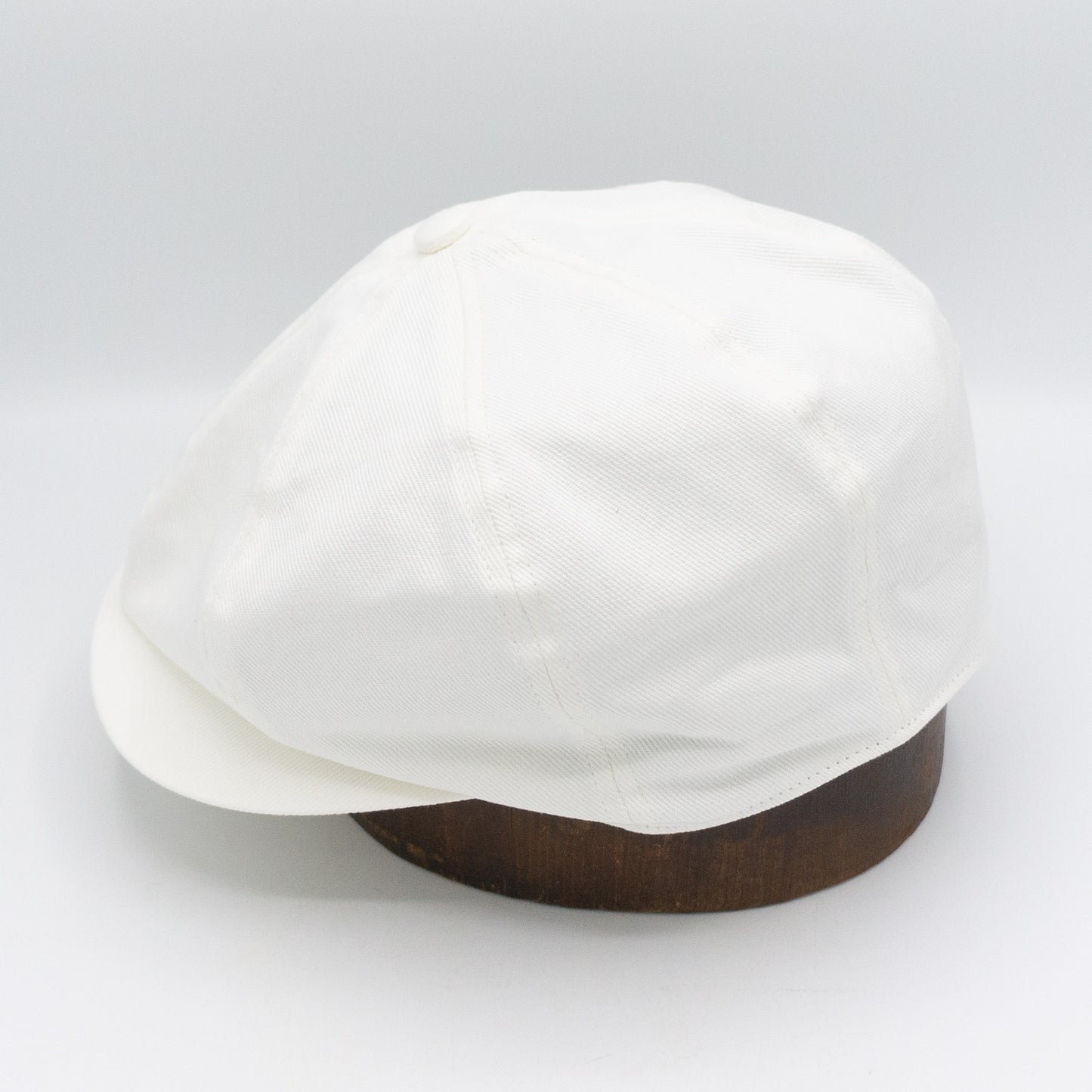 This pure white cotton hunting cap can be easily matched with a variety of styles. The lining has a dressy feel to it, making it a masculine hat that is typical of G&F.