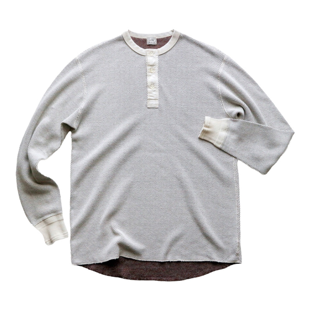 LOOP&WEFT LRH1036 DOUBLE FACE HEX HONEYCOMB HENLEY NECK THERMAL VINTAGE IVORY
