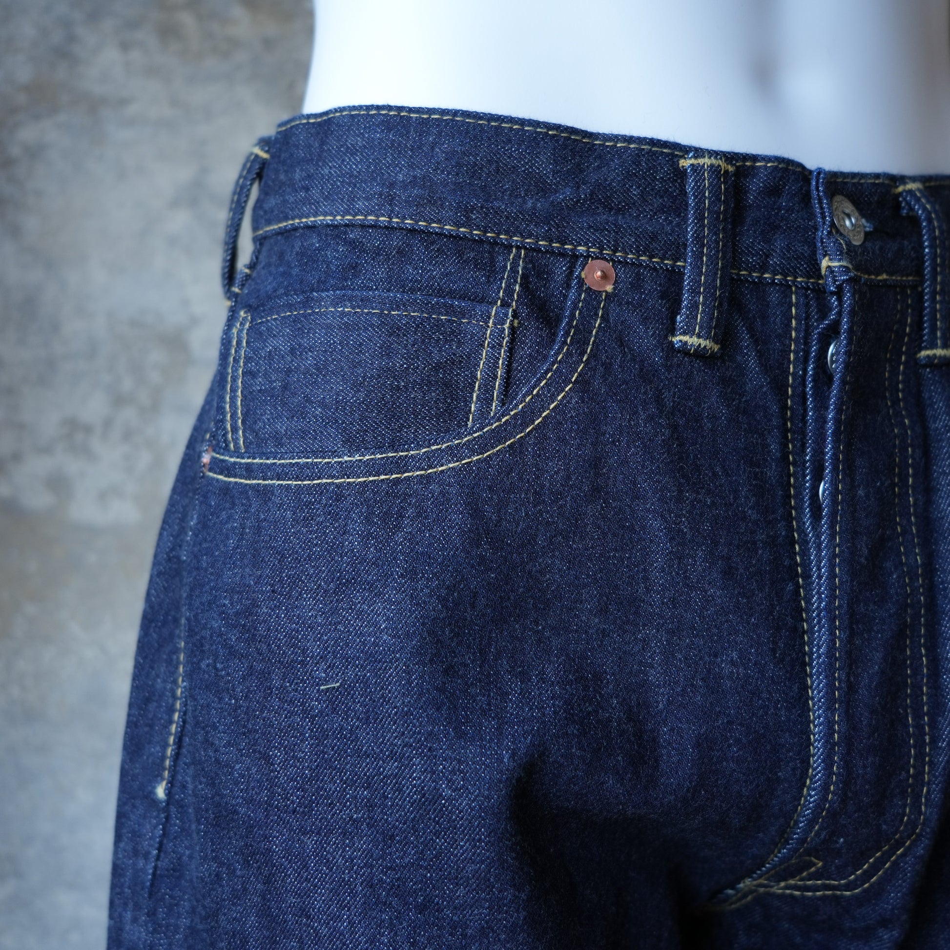 参考にしたヴィンテージに倣って制作された大戦後期モデル。自分で穿きこんでまるでヴィンテージのようになったら楽しいですね♪