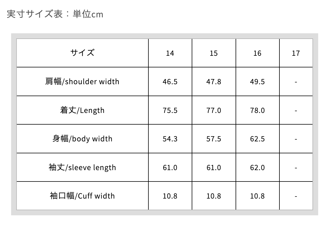 Sleeve length 61.0 61.0 62.0 -