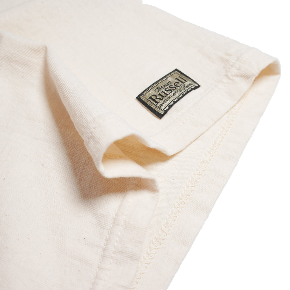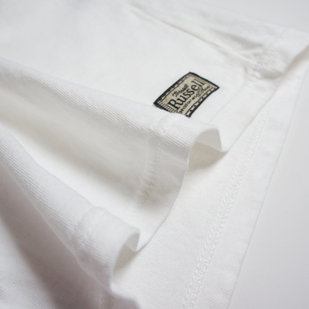 1940 年代のアメリカを彷彿とさせるような空気紡績糸により生み出されるドライな質感と肌触り、絶妙な厚さとサラッとした着心地が特徴。