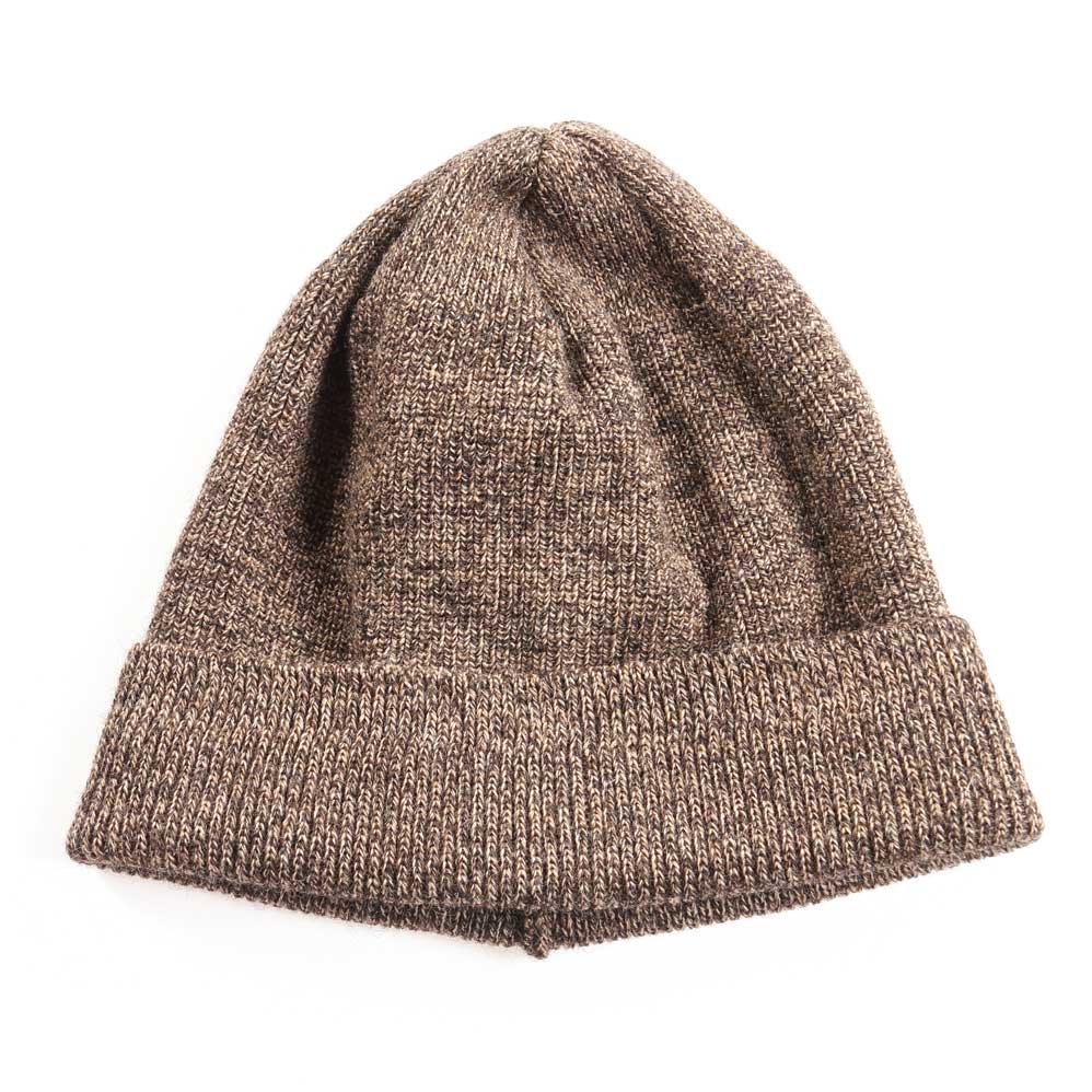 度詰で天竺編みしたウール100%のニットキャップです。ガサッとした硬めの質感。その分ホールド感があり、被ったときの形がきれいです。