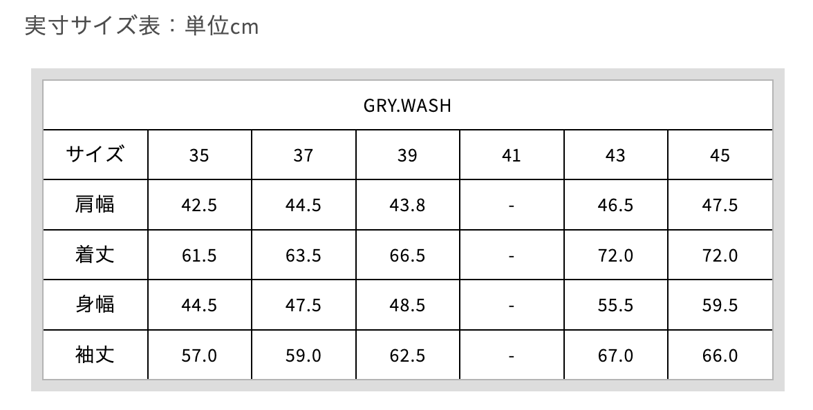 | 肩幅 | 42.5 | 44.5 | 43.8 | - | 46.5 | 47.5 |