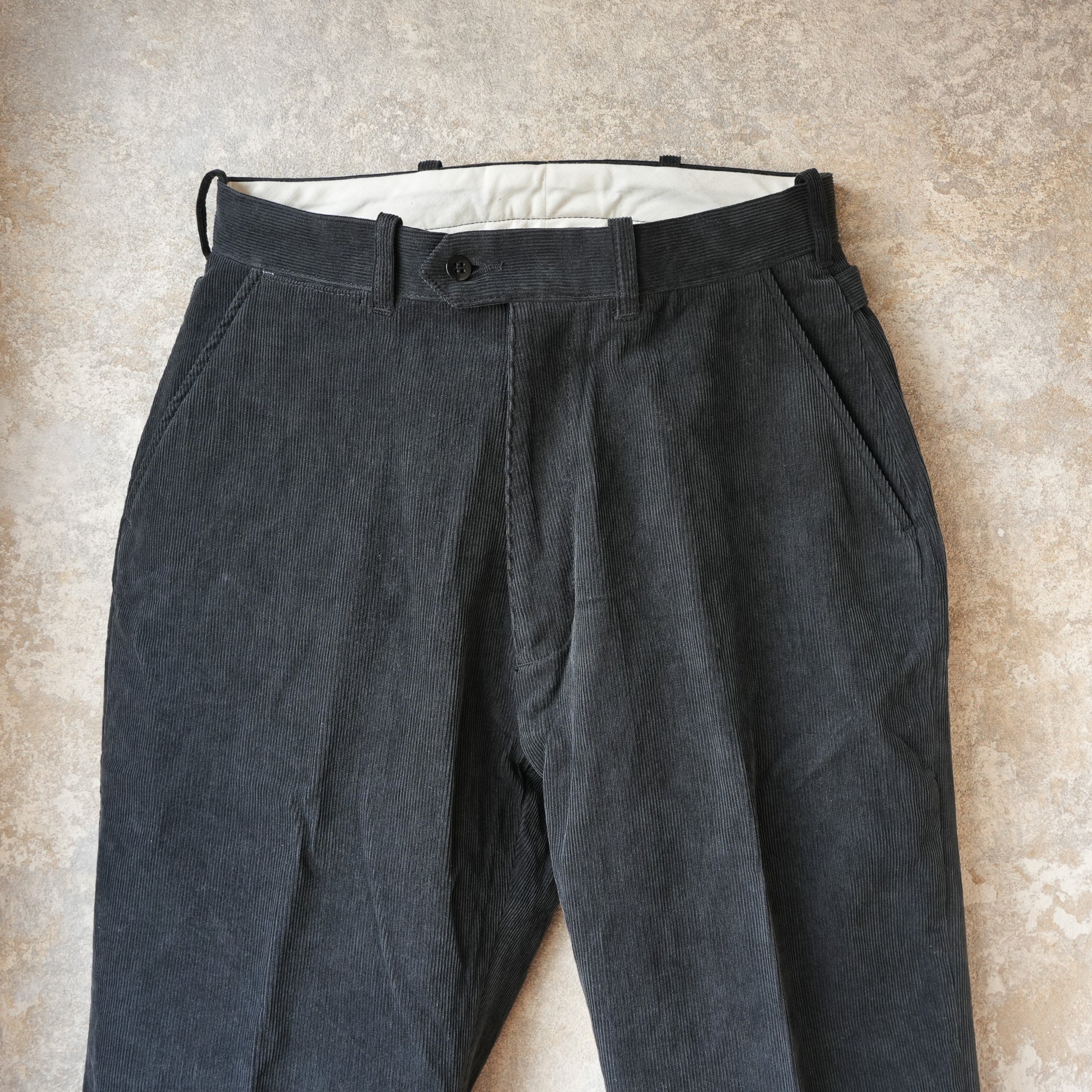 Trousers made from 14-wale fine-ribbed corduroy, ideal for sportswear. Features side adjusters, a custom-ordered TALON zip fly, and a coin pocket.