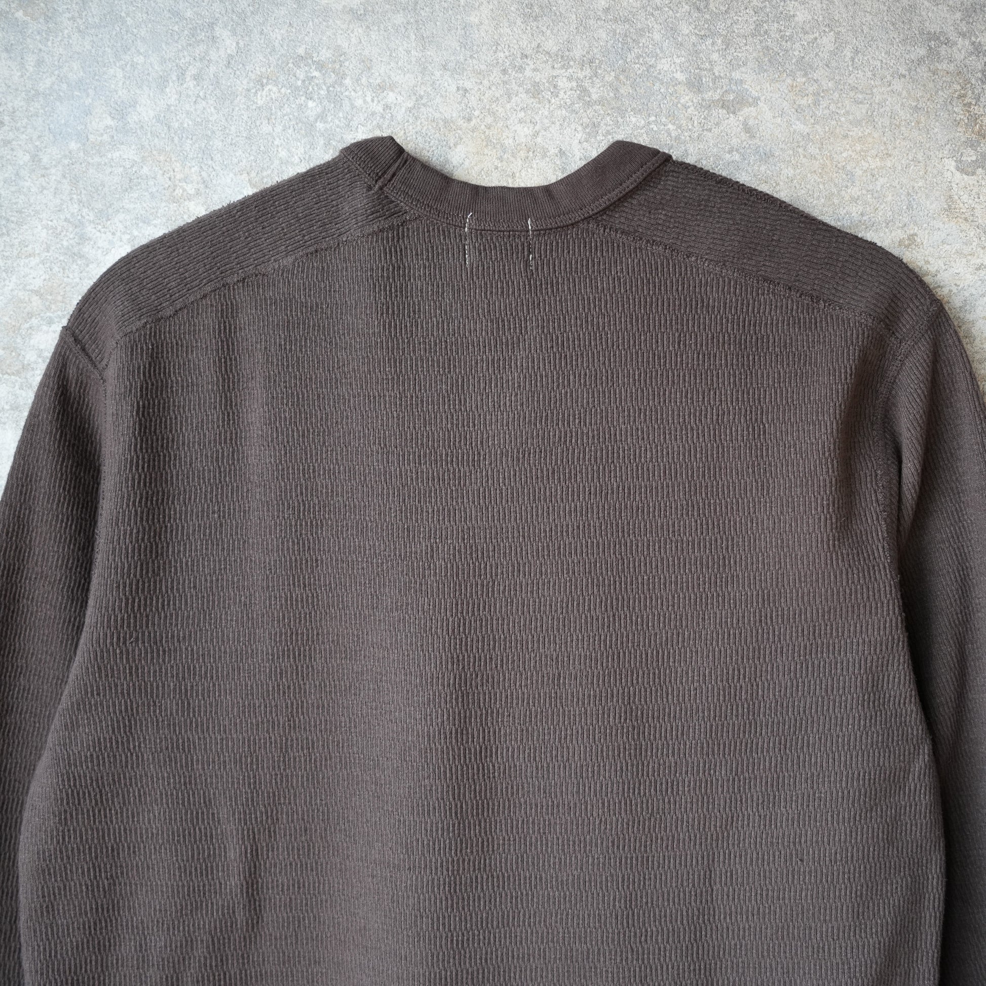 Crewneck thermal made from our original long honeycomb fabric, knitted with high-quality Supima cotton slub yarn. Features a soft feel against the skin, excellent warmth retention, and a vintage-inspired texture. Designed in the style of 60s military thermals, with meticulous attention to detail including a durable binder neck and four-needle flat-seam stitching. Offers a relaxed regular fit, perfect for wearing alone or as a layering piece.