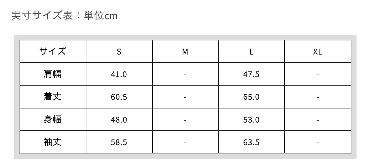 | 肩幅 | 41.0 | - | 47.5 | 50.5 |