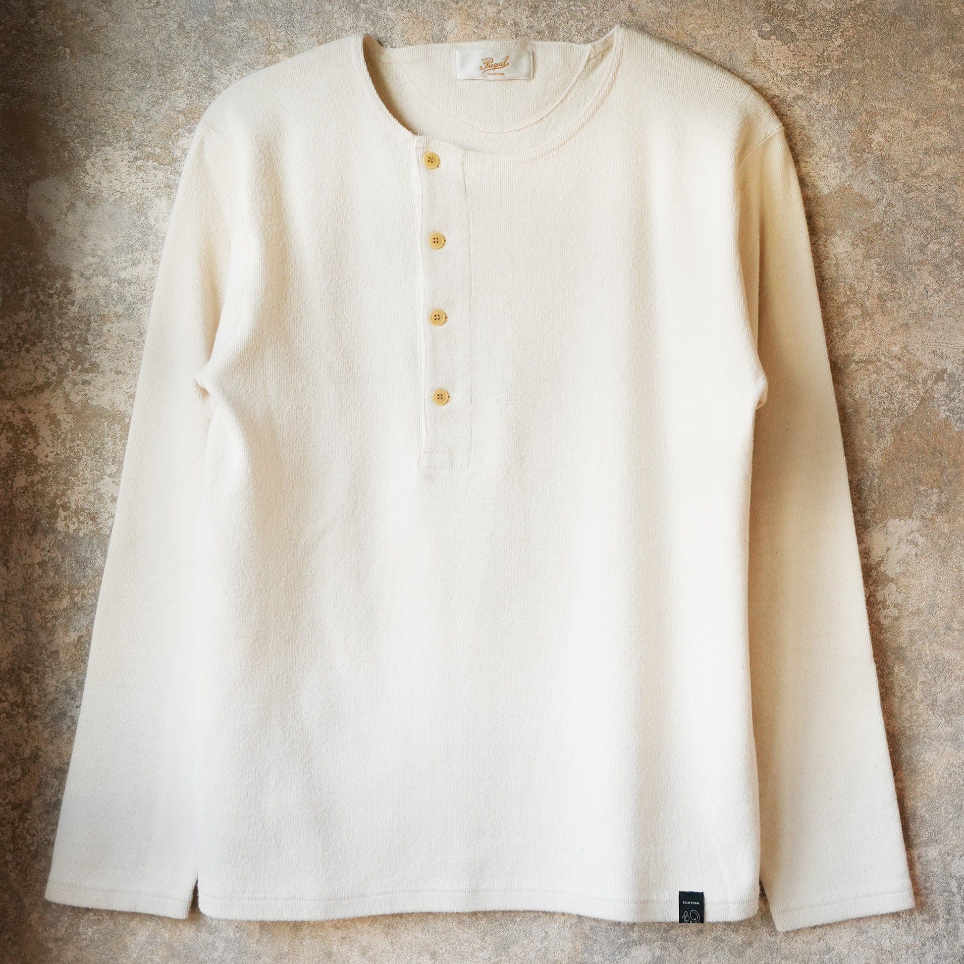 1920年代のウールアンダーウェアをコットン糸で再現したヘンリーネックTシャツです。