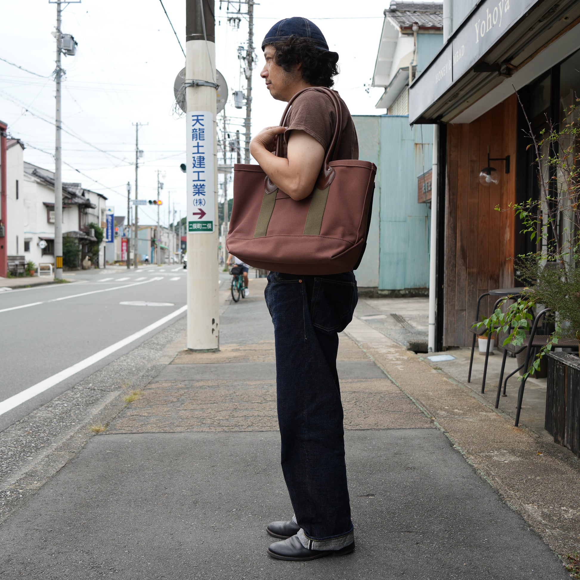 WORKERS_Leather Handle Tote_Medium Bag_Brown Canvas_Long Handle