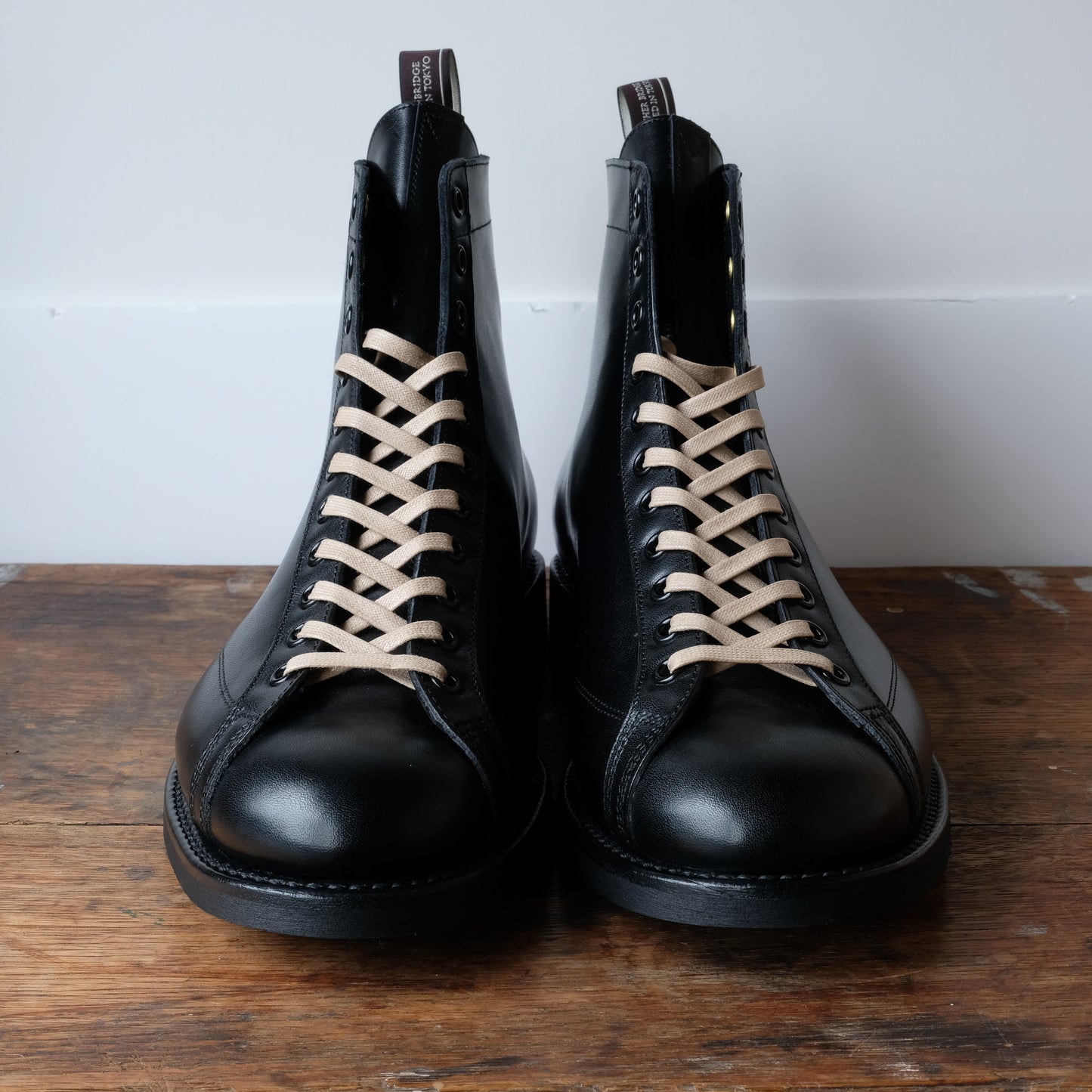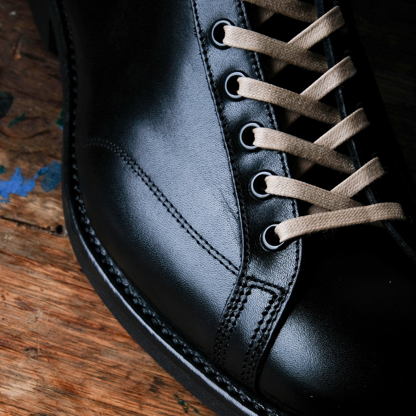 トゥから流れるようなアイレットのラインとシューレースが唯一無二なスタイルです。カーフ素材と屈曲性の良さが相まって履き心地は最上級です。