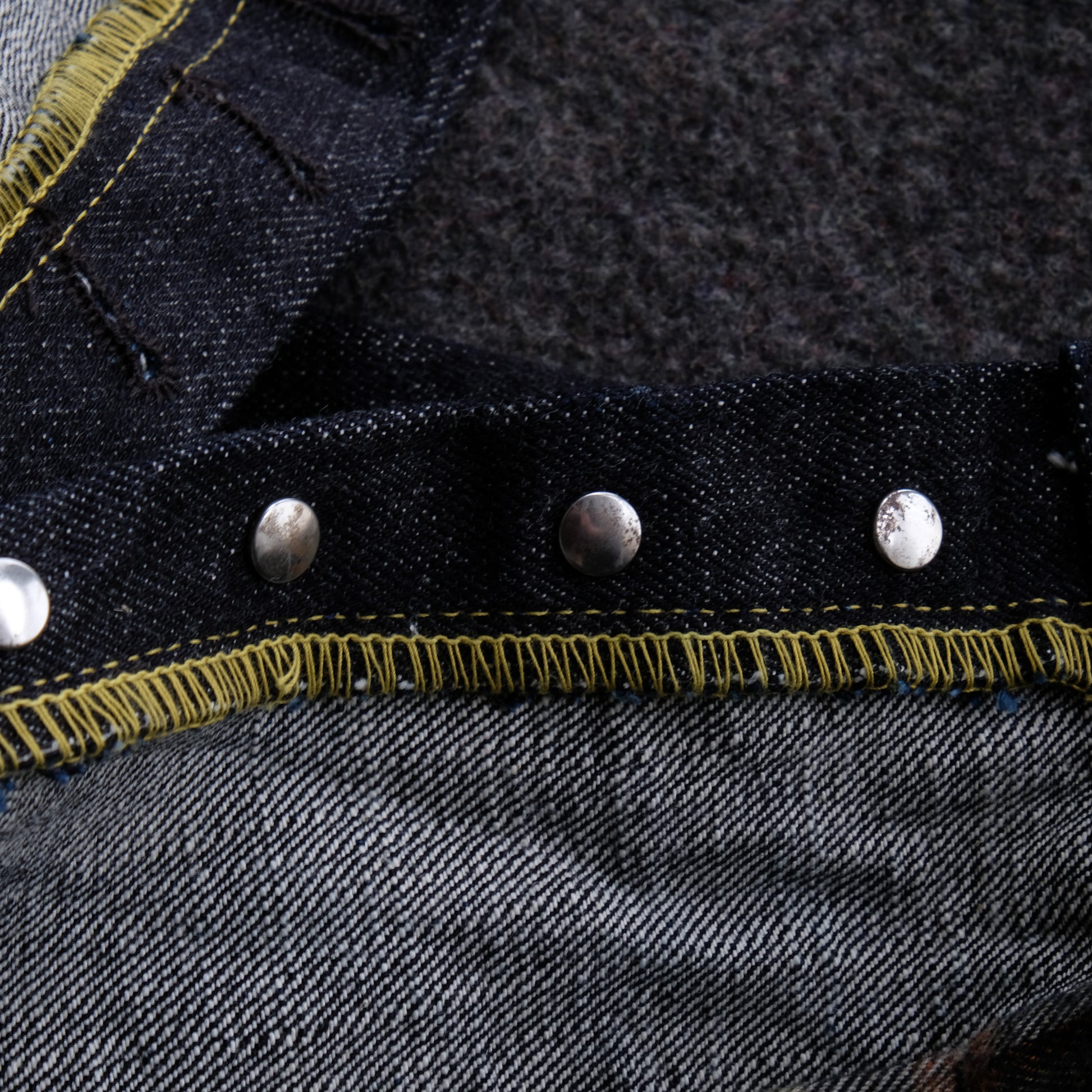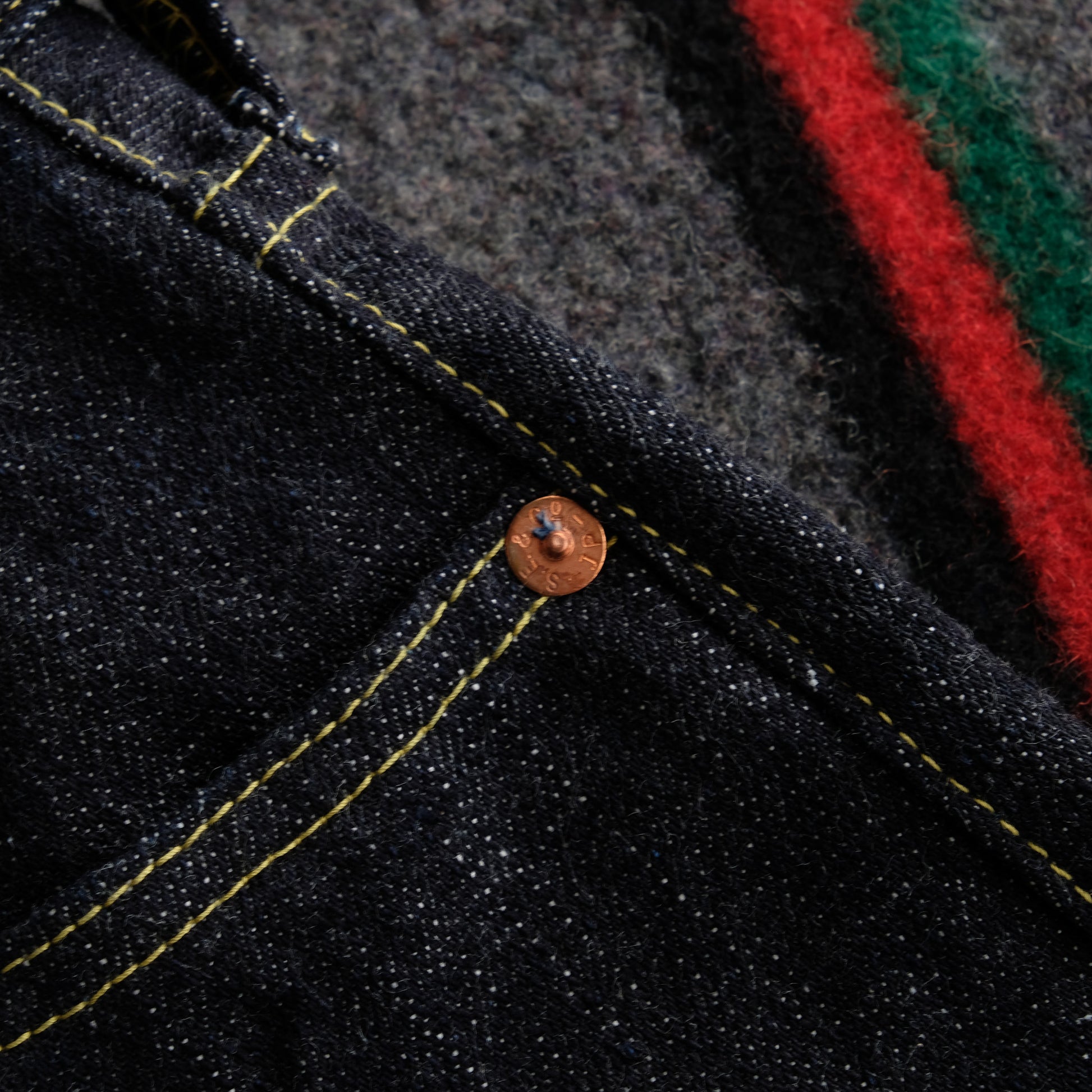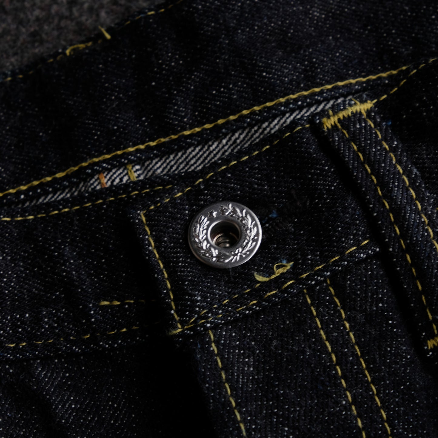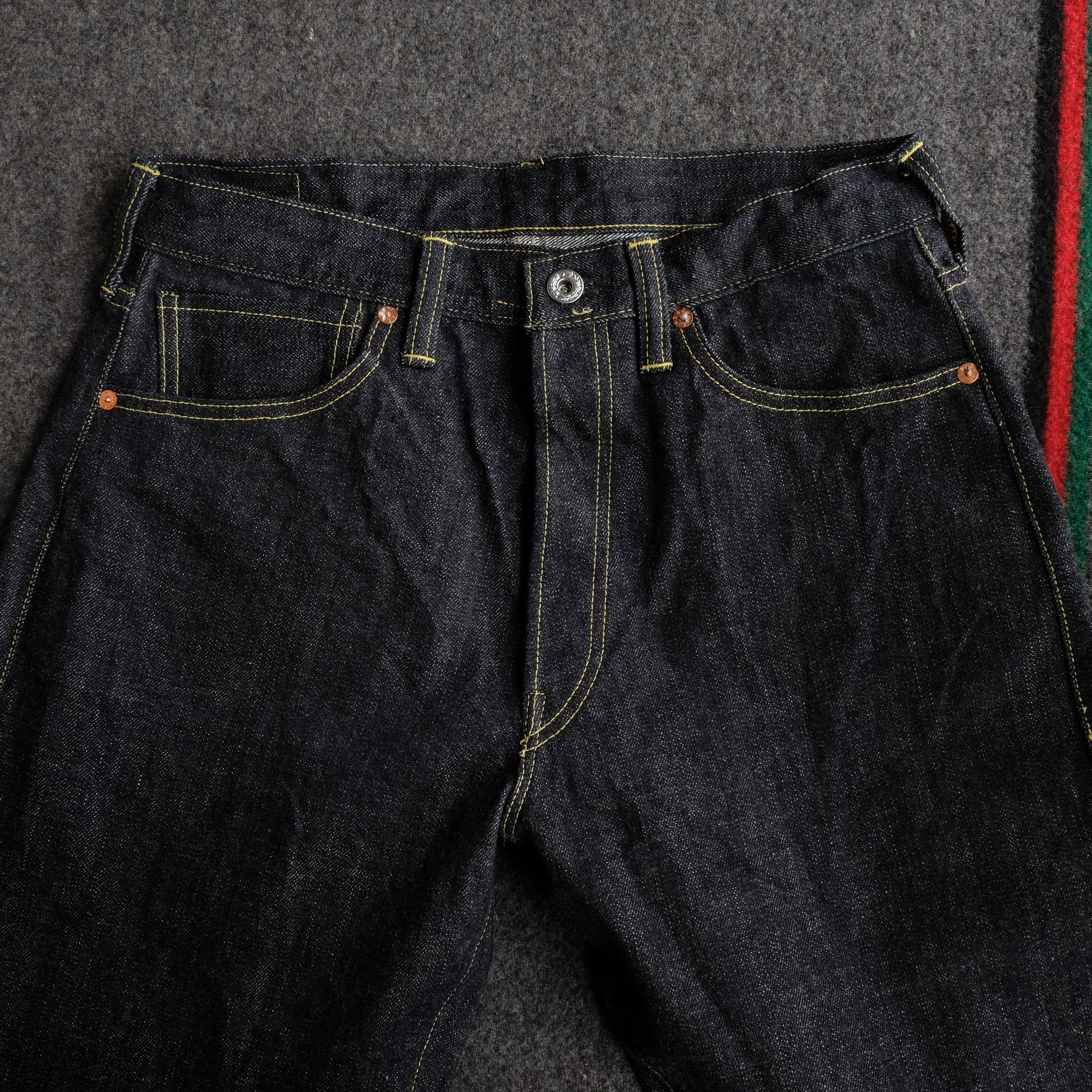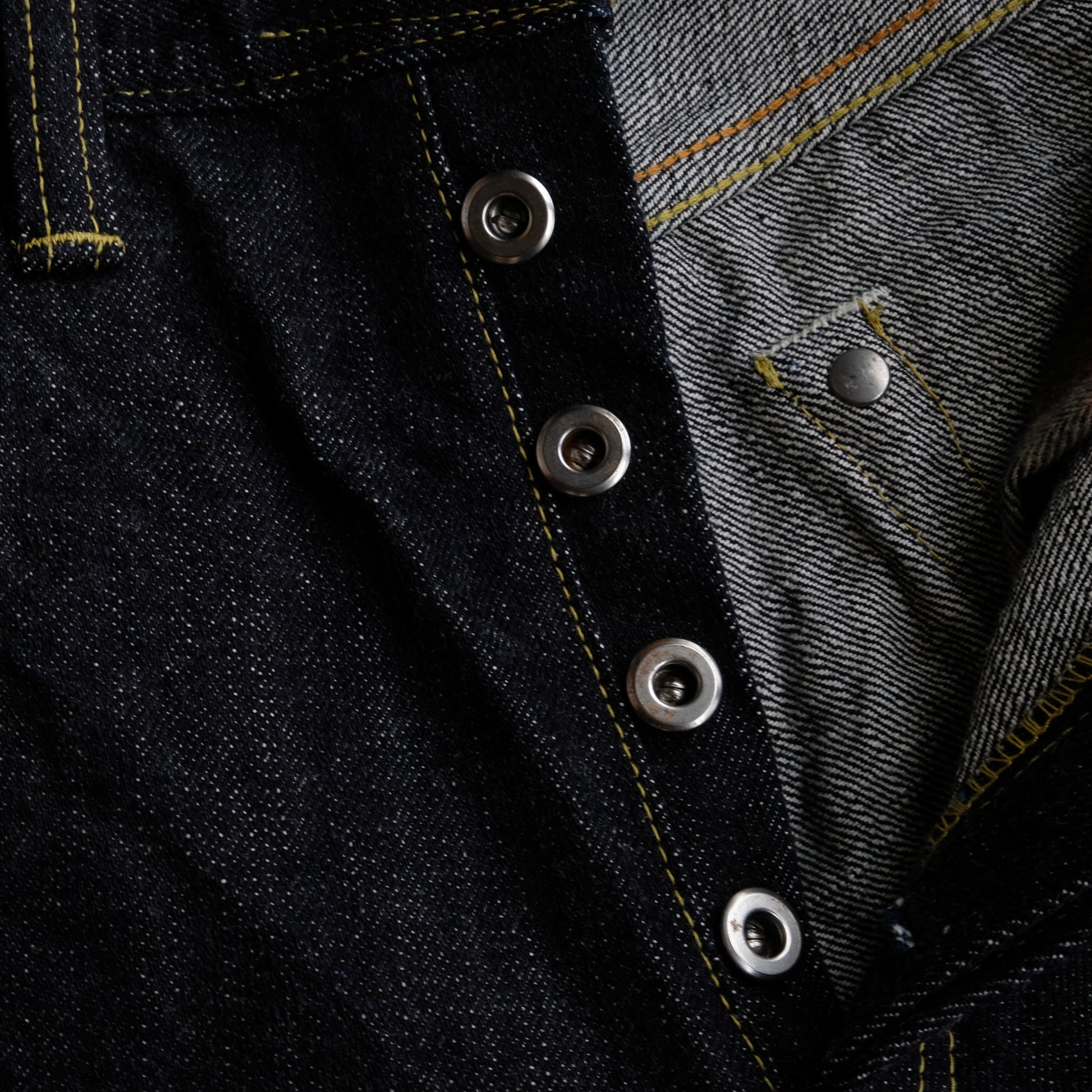 見えないところではありますが、隠しリベットもオリジナルの鉄製リベットを製作。長年穿きこんでいただきますと、リベット周りにサビが滲んできます。