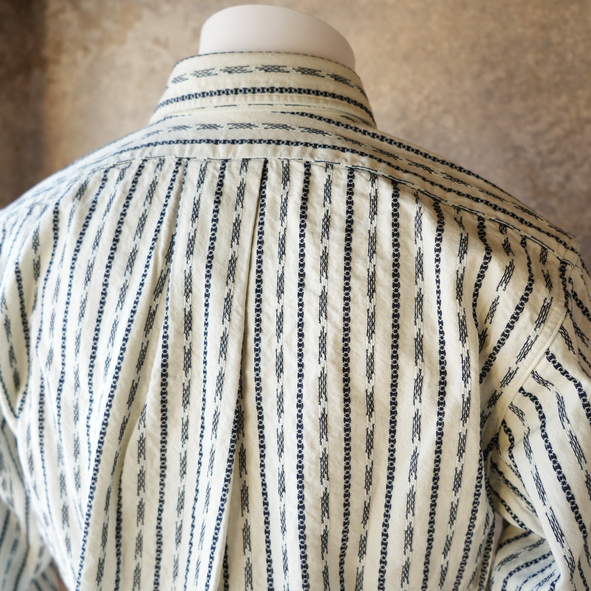 はっきりとした織柄が入っていますが、爽やかな印象のジャガードストライプシャツです。