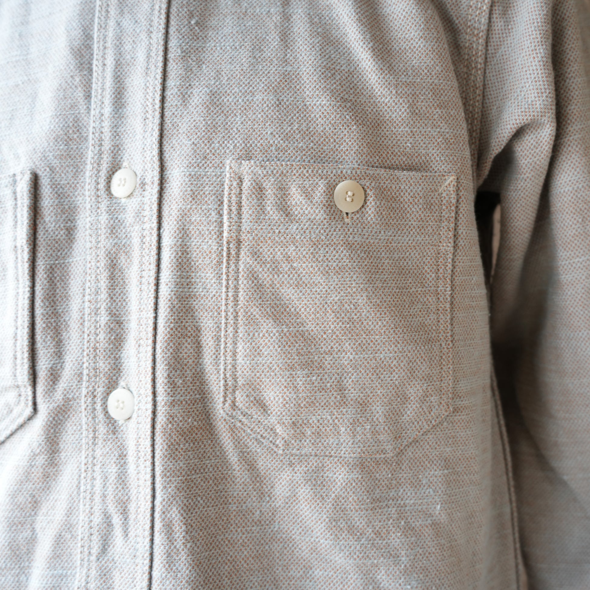 また、太番手のムラ糸で織り上げられた生地はしっかりとした厚みがあります。起毛はありませんので、春秋は羽織ものとしても使いやすく、長い期間ご使用になれます。