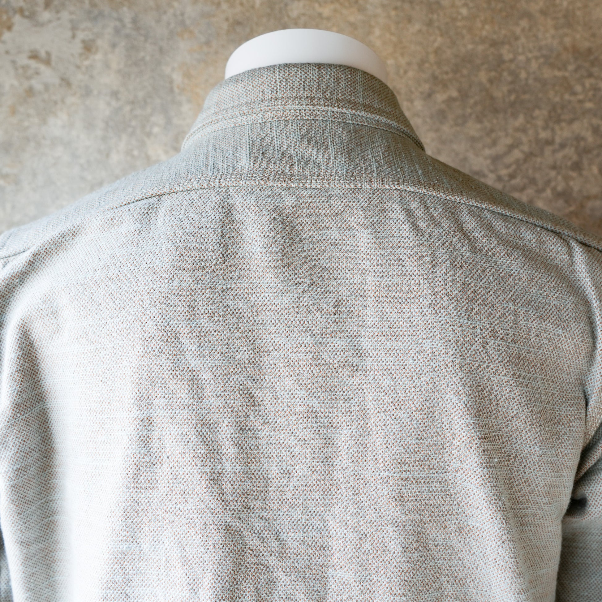 先染め織物の産地である新潟県で織られた無地フランネル生地によるシャツ。