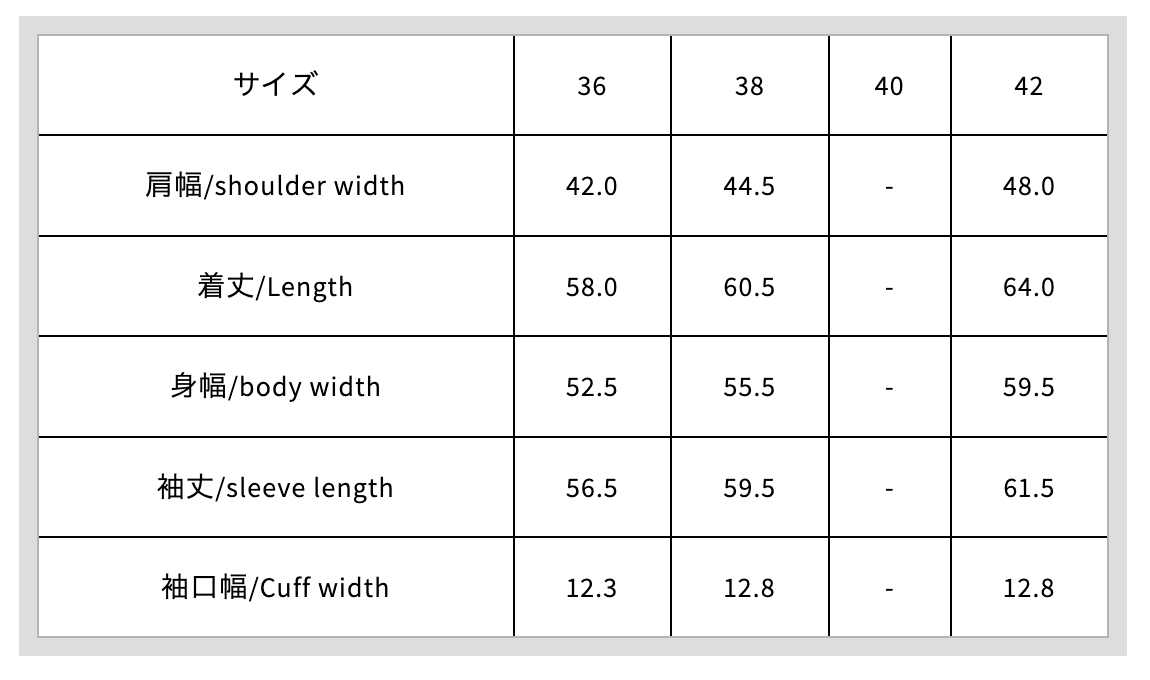 | 肩幅/shoulder width | 42.0 | 44.5 | - | 48.0 |