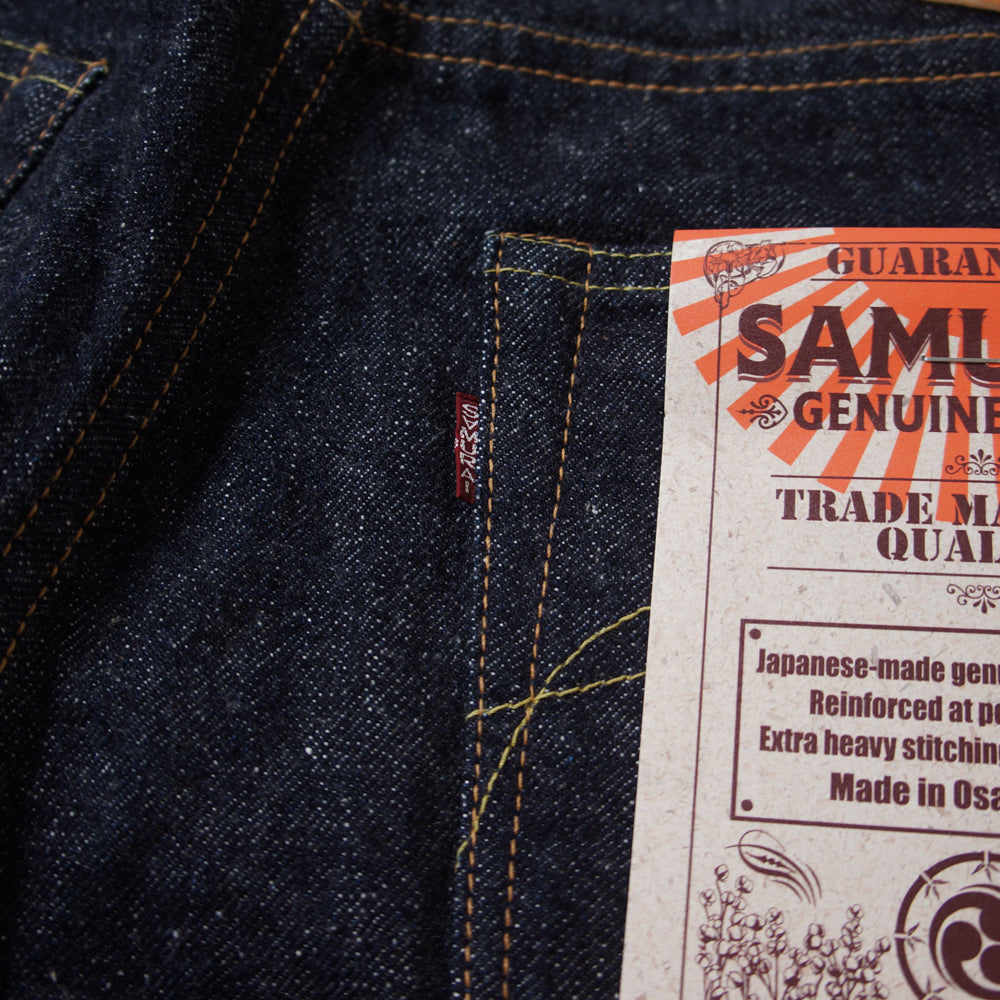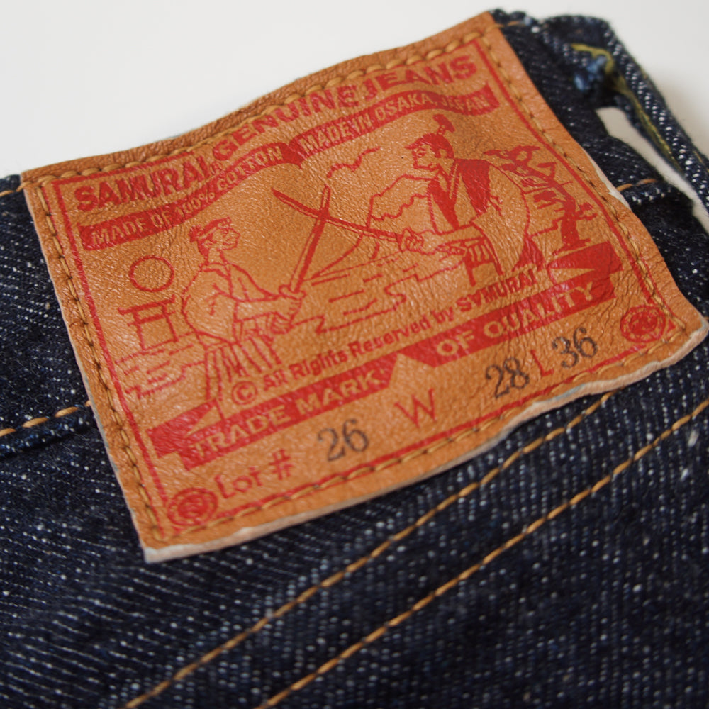 革ラベルはサムライジーンズ初期のデザイン、フラッシャーも初期のイメージをベースに、配色を抑えたデザインです。