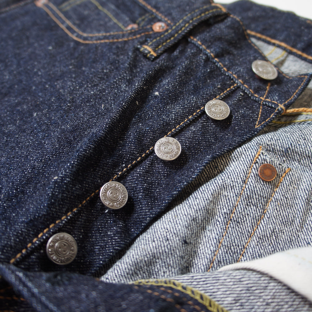 SAMURAI JAPAN鉄製ボタン、SAMURAI CO LTDリベット、隠しリベットは真鍮製のツープロングタイプで、ボリュームのある形状になります。