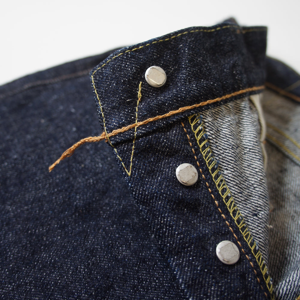 縫製についても、当時のジーンズの雰囲気を表現すべく、ALL綿糸はもちろんの事、糸色・番手・運針・ステッチ幅など、こだわりの仕様としています。