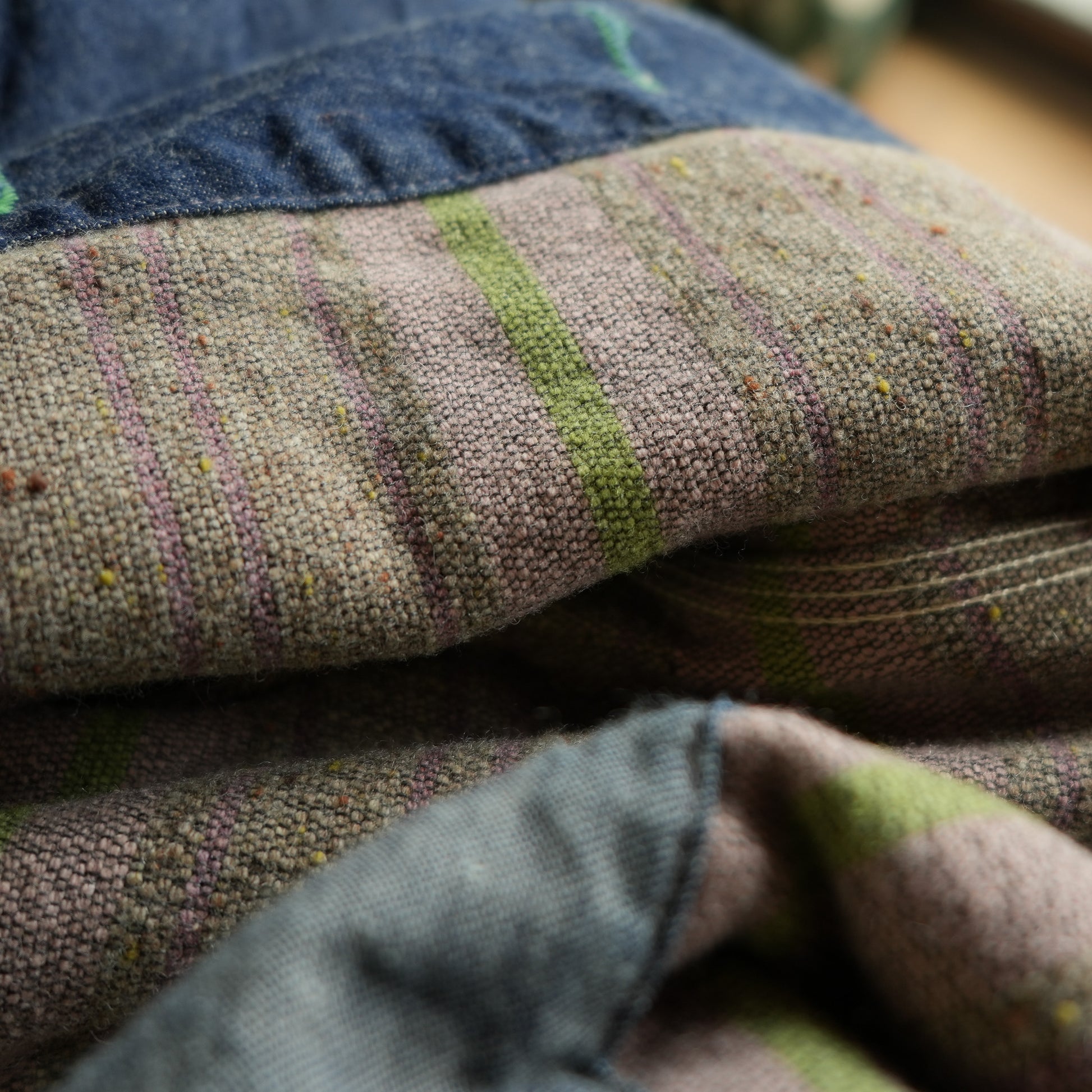 ブランケットのボーダーも、完全に妄想から生まれたオリジナル。絶妙なグリーンが表側のさまざまなグリーンと重なり合って、薄いピンクで少しポップに。気づけば、カバーオールの中がちょっとした“緑地公園”のようになりました。 最近思うのは、衣食住ではない“贅沢品”である洋服の役割は、毎日、着る人のテンションを少しだけ上げること。そしてその力が、学校や会社へ向かう背中を、目立たないところで支えているのだと思っています。だからこの Cathead JK も、ただ暖かいだけの服ではなく、毎日を少し前向きにする存在でありたいと思いました。 この Cathead JK を通して、冬が少しでも楽しい季節になる人が一人でも増えたら嬉しいです。 ーーーーーーーーーーーーーーーーーーーーーーーーーーーーーーーーーー 細かいディテールへのこだわりは通常のCat Head Jacketのページにも記載がありますのでぜひそちらもご確認ください。