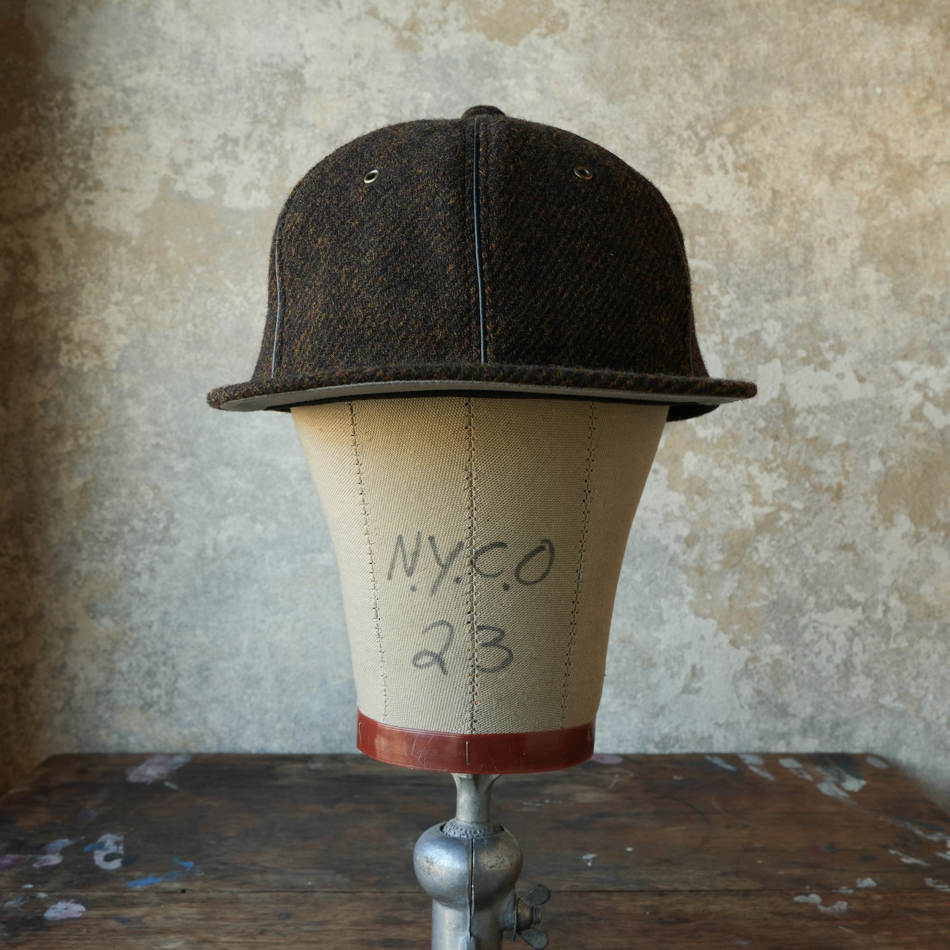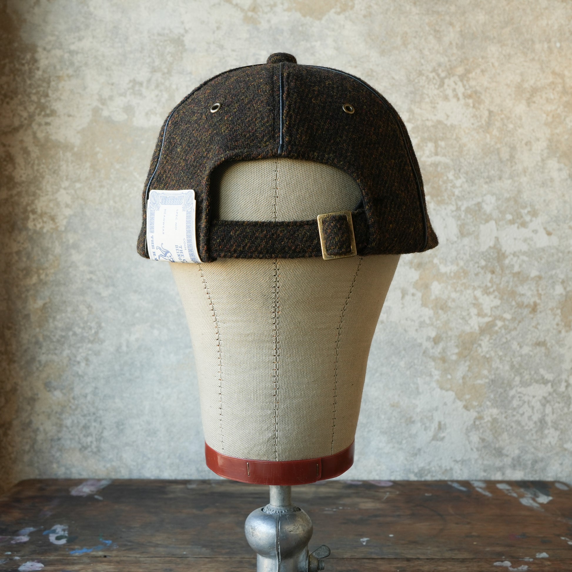 6-panel basic baseball cap. It is a rough twill made of 100% wool, a voluminous fabric with the warmth of wool, and can be worn without stress because of its soft and lightweight fabric. Synthetic leather piping is sewn into the peel of the 6-panel crown, a detail that might be found on a 60s bowling shirt. The combination of wool and synthetic leather makes for a plain yet captivating design. *FREE SIZE(56.5CM-60CM people can wear it without stress)