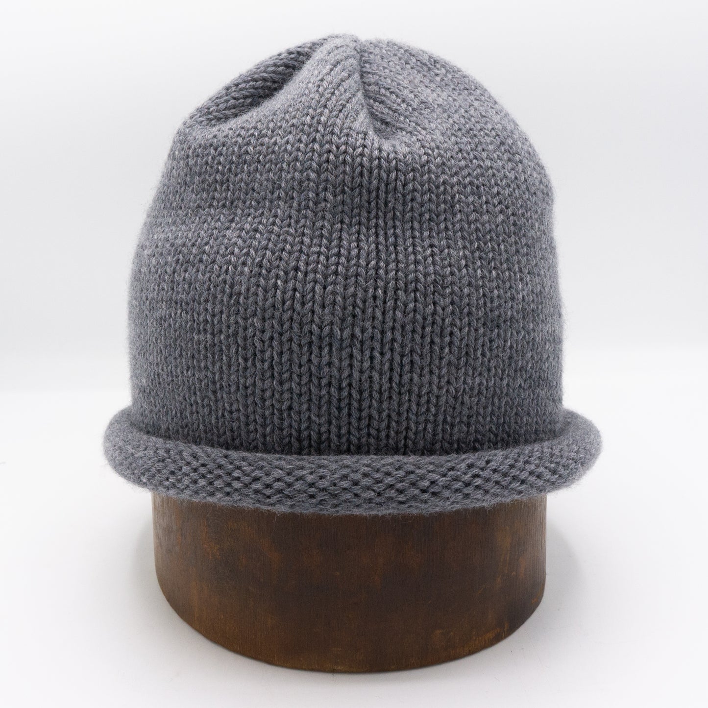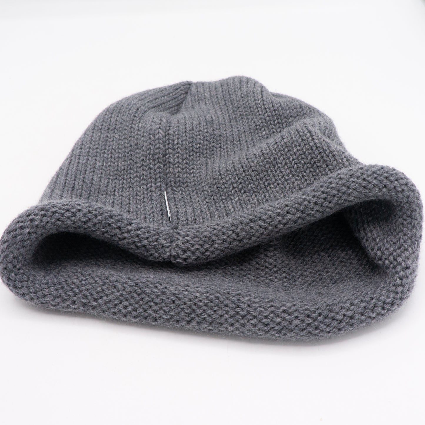 好みの深さに変えて被れるデザインでオーストラリア産メリノウールを使用した肌触りの良いウール100%の毛糸で編まれています。