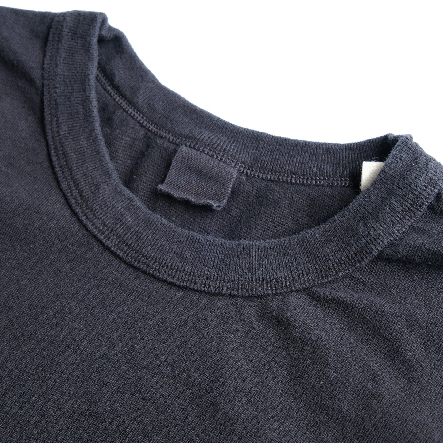 首まわりのリブの取り付けは、3つ折バインダー仕様としました。Tシャツは首周りが伸び切ってダメになることが多いですが、UESのTシャツは厚手のリブを25mm幅のバインダーネック仕様にすることで強度を確保しています。