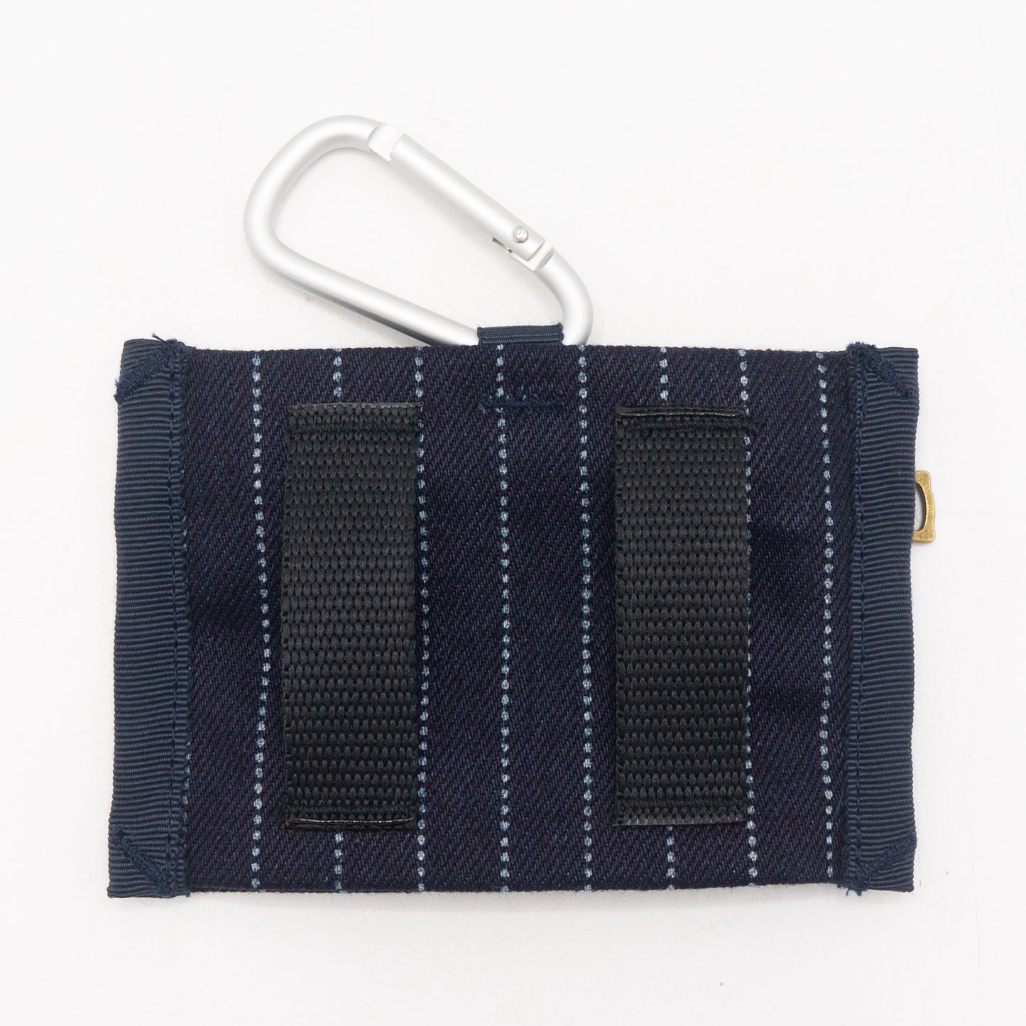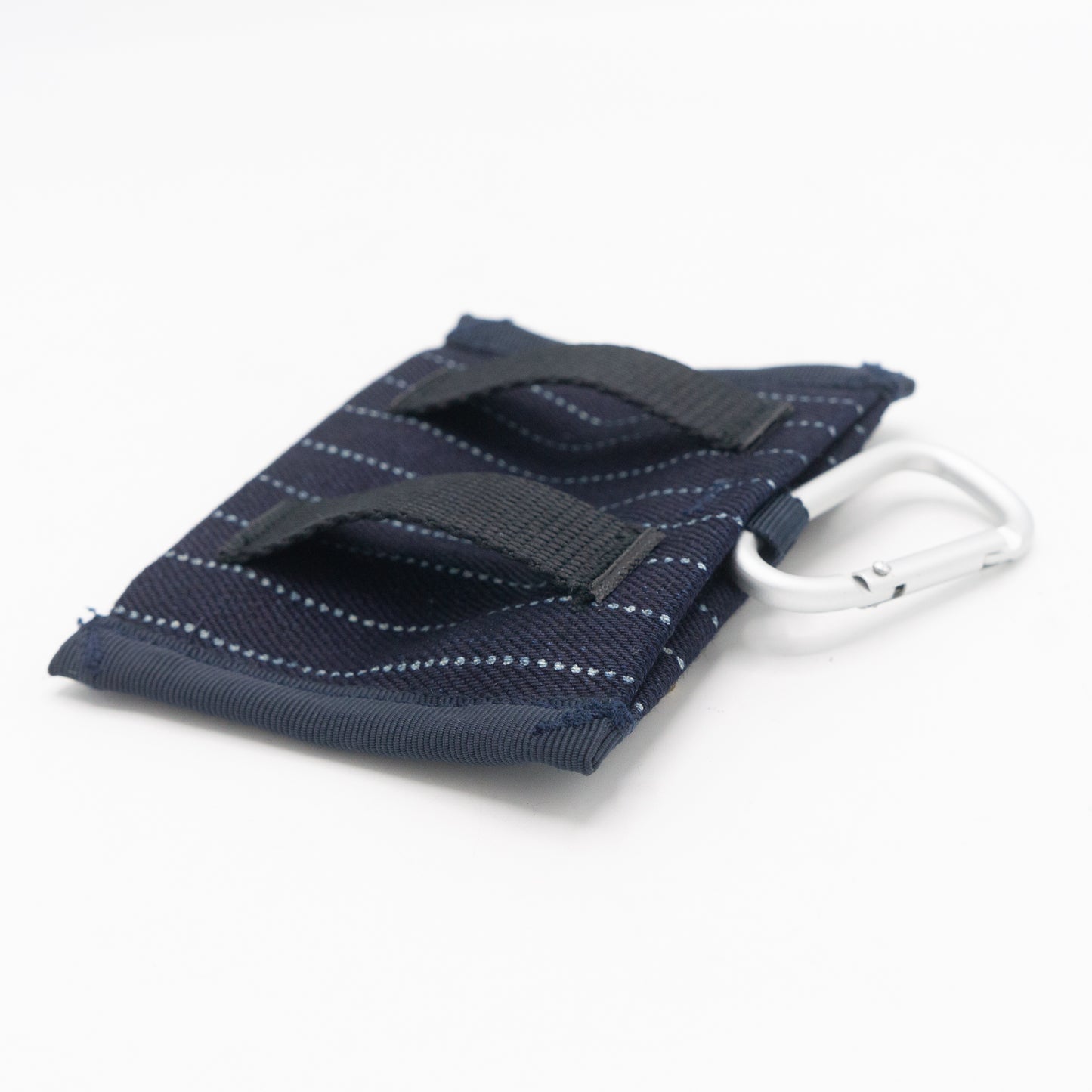 ベルトに通せるように、裏側にループを設けています。また、付属するカラビナで吊り下げられるように、上部に小さなループも付いています。小ぶりなサイズながら、ポーチ上下のマチが開くので、厚みがあるものも入ります。工夫次第で色々な使い方が出来そうです。