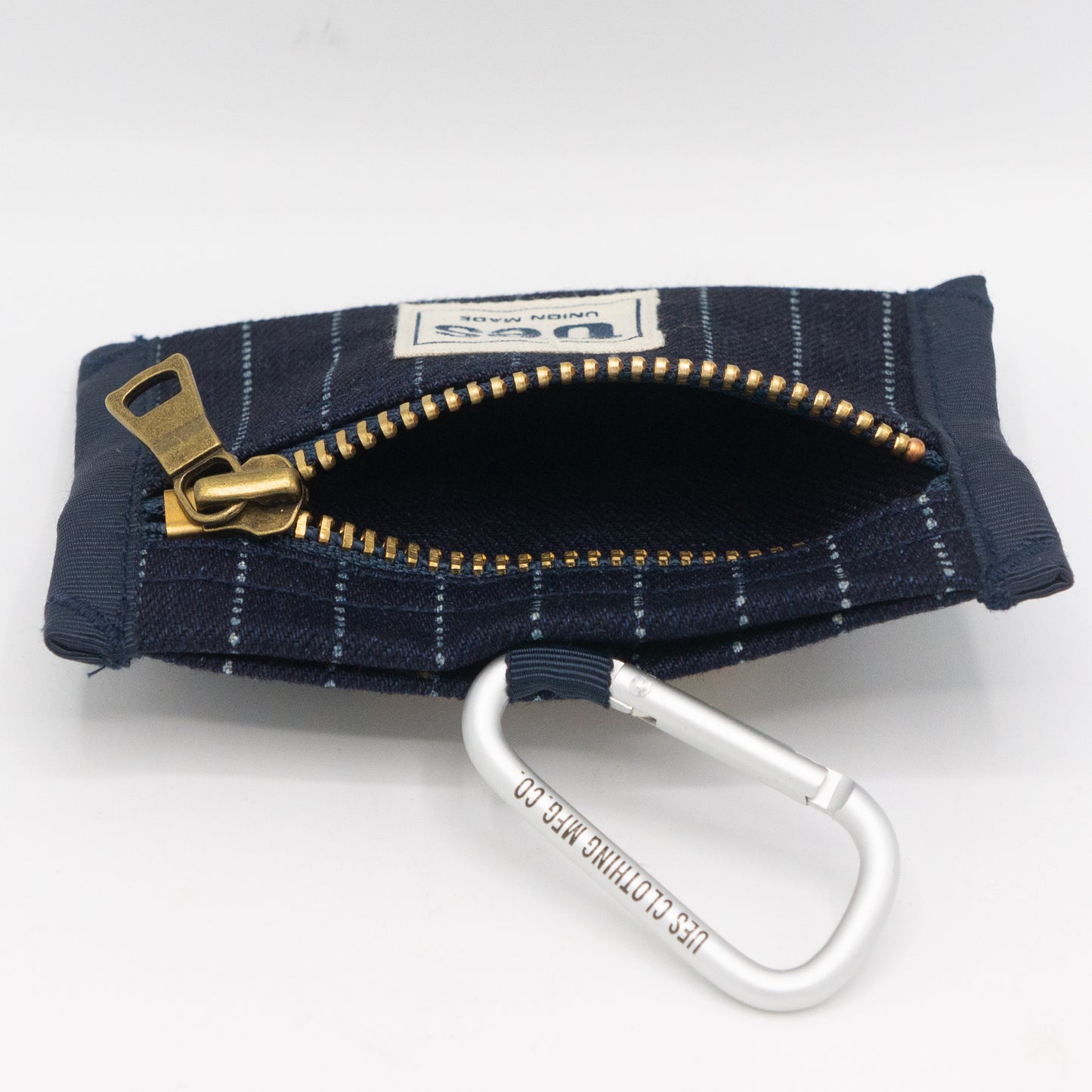 デニム、ヒッコリー、ウォバッシュ、キャメル、そしてブラックの5色で展開するベルトポーチ。いずれもUES定番デニムと同じ14.9ozの厚手の生地を素材に縫製したしっかりとした製品です。