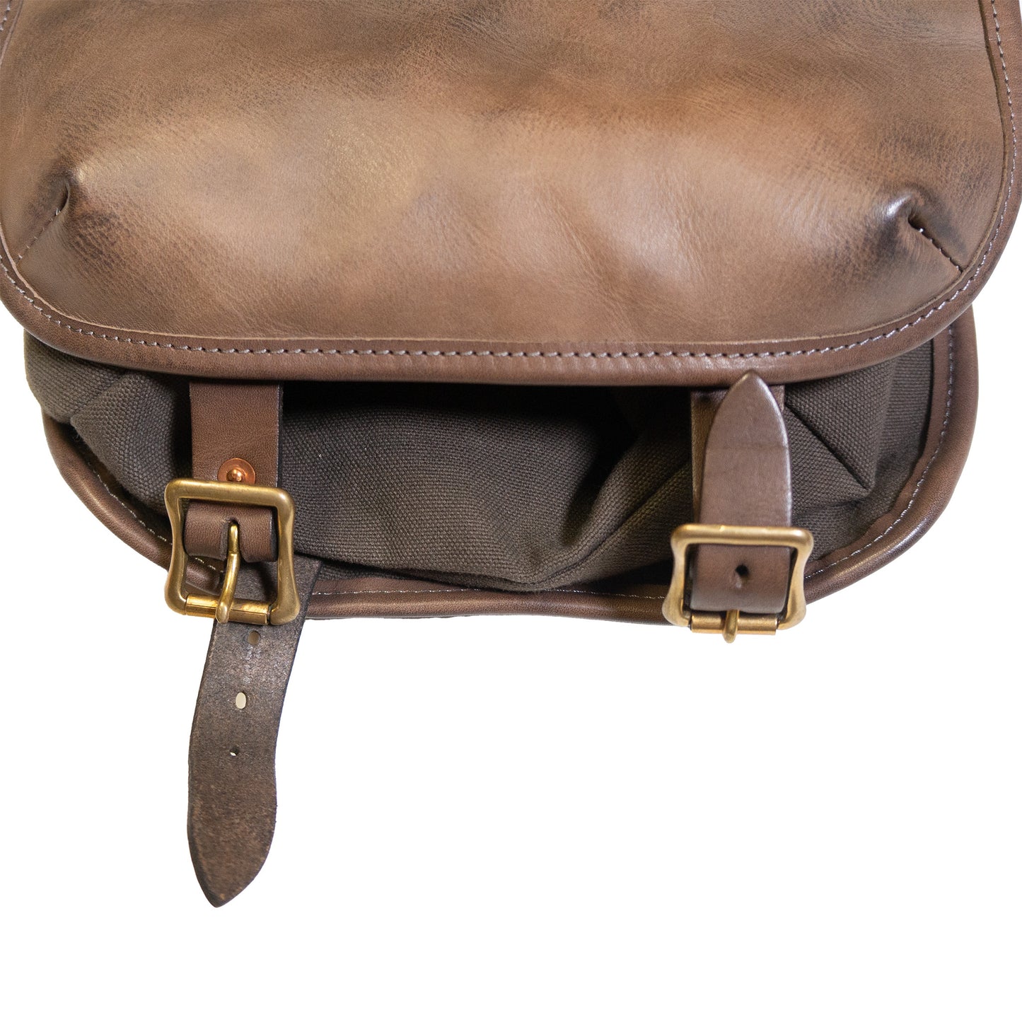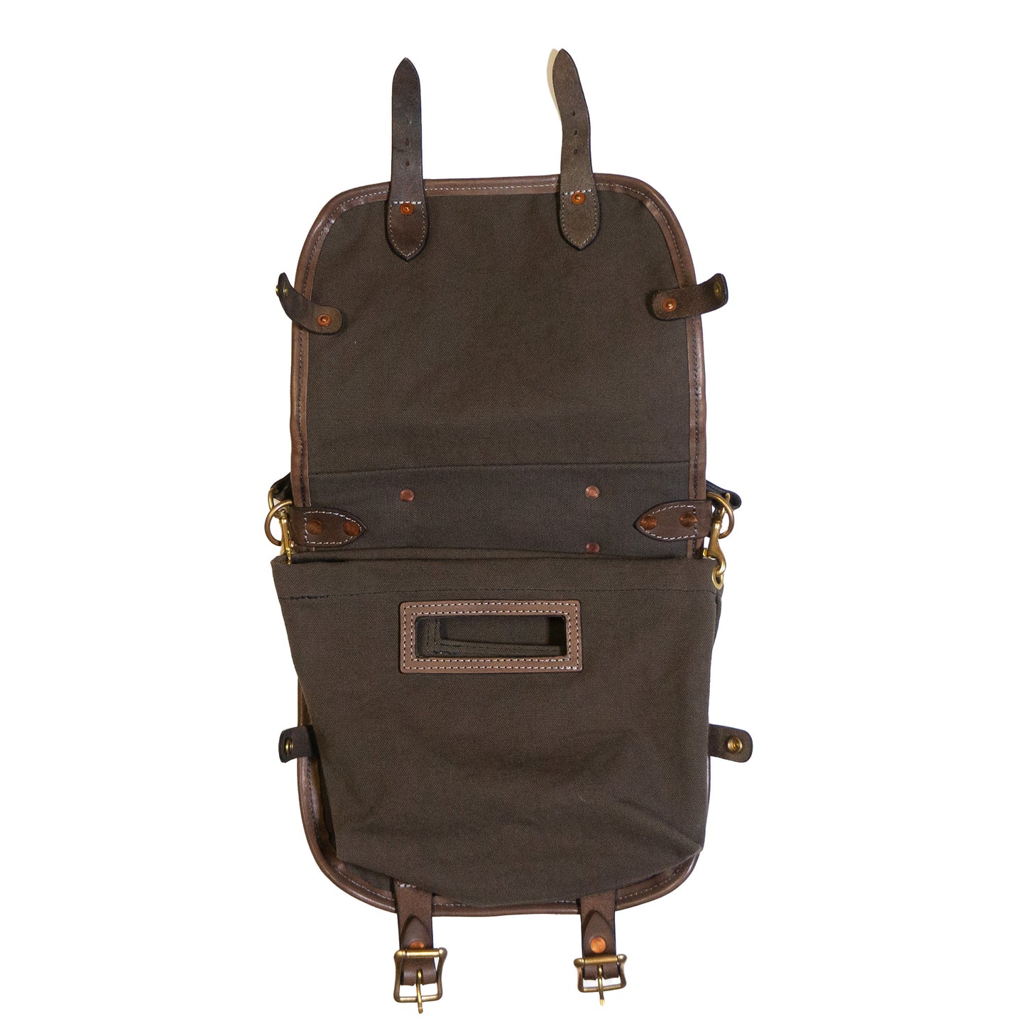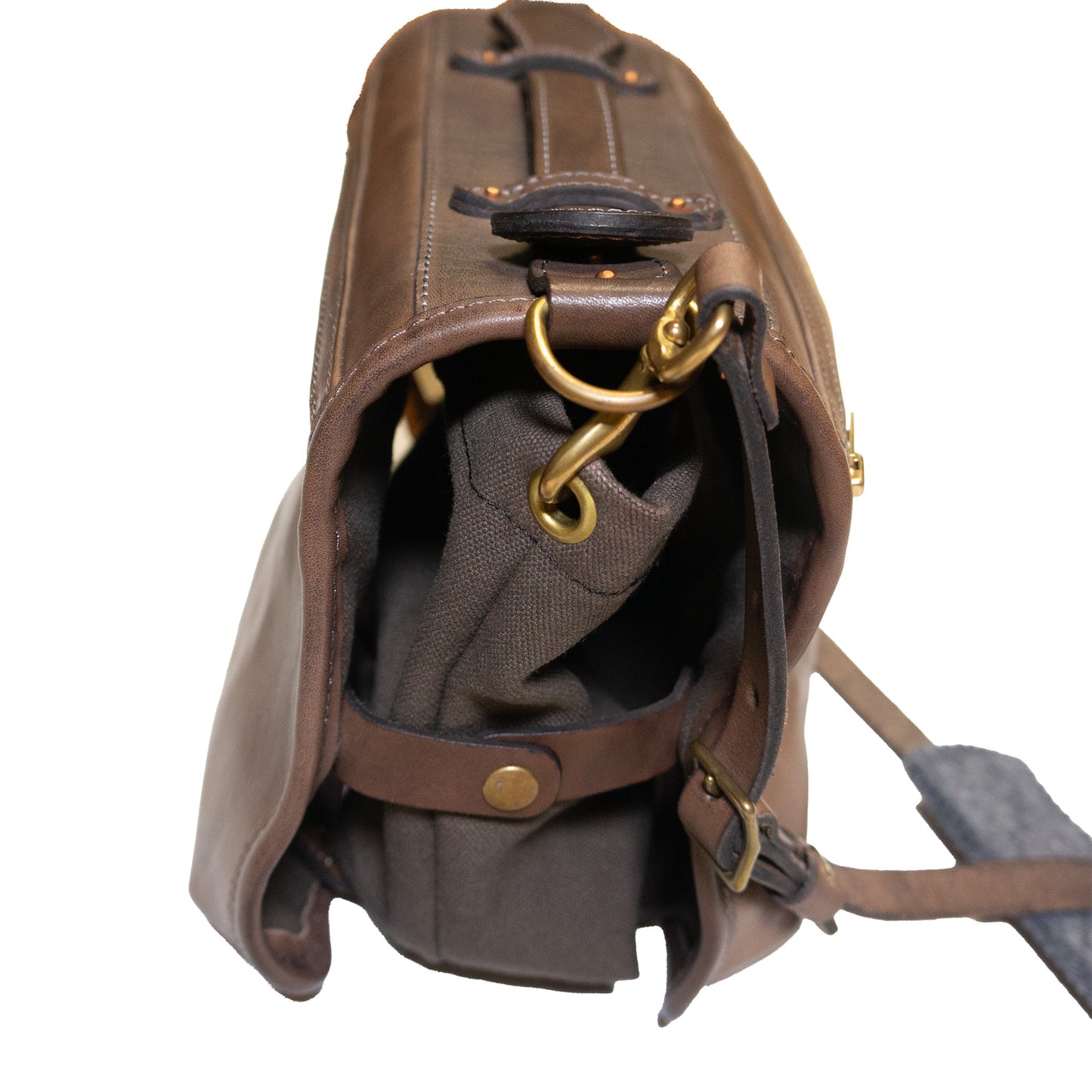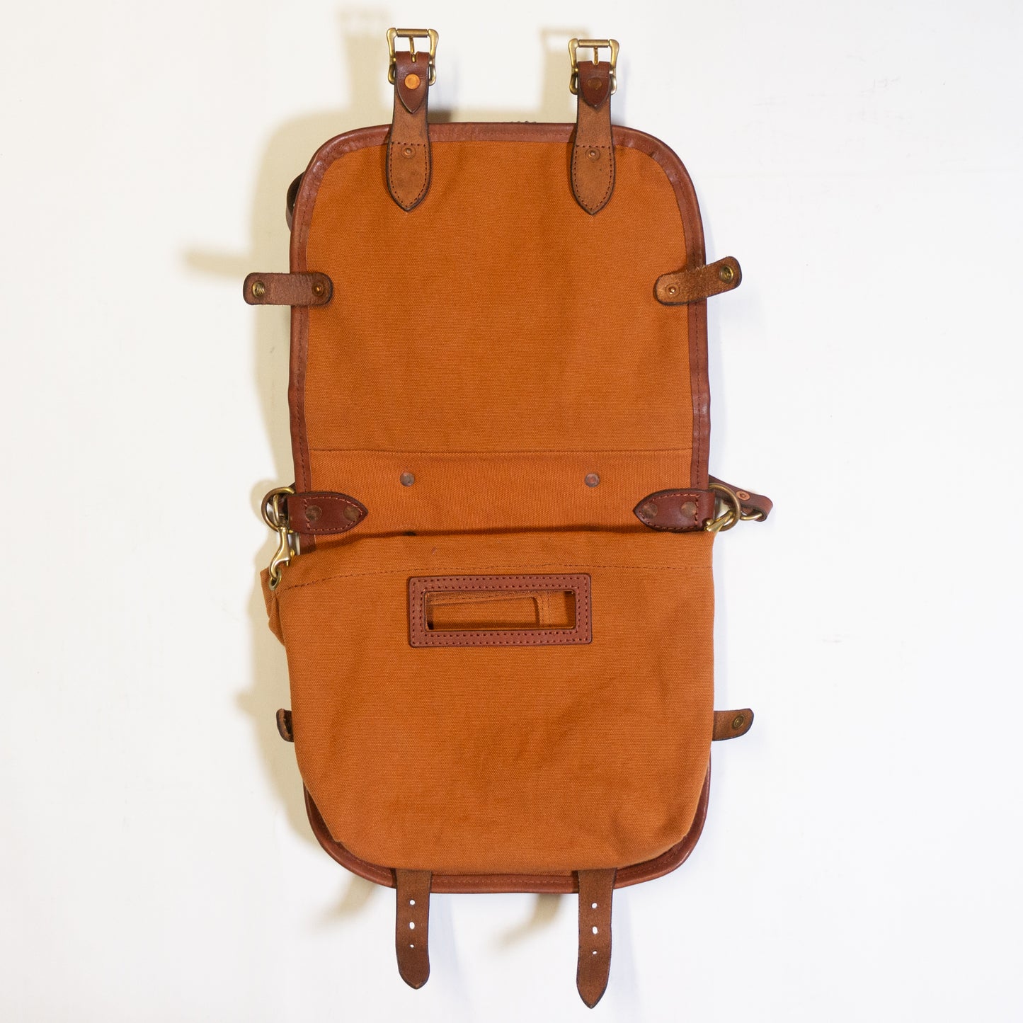 サイドのスナップを外すと中の帆布バッグが取り出せます。中の帆布バッグには少し軽めのもの収納するのがおすすめです。