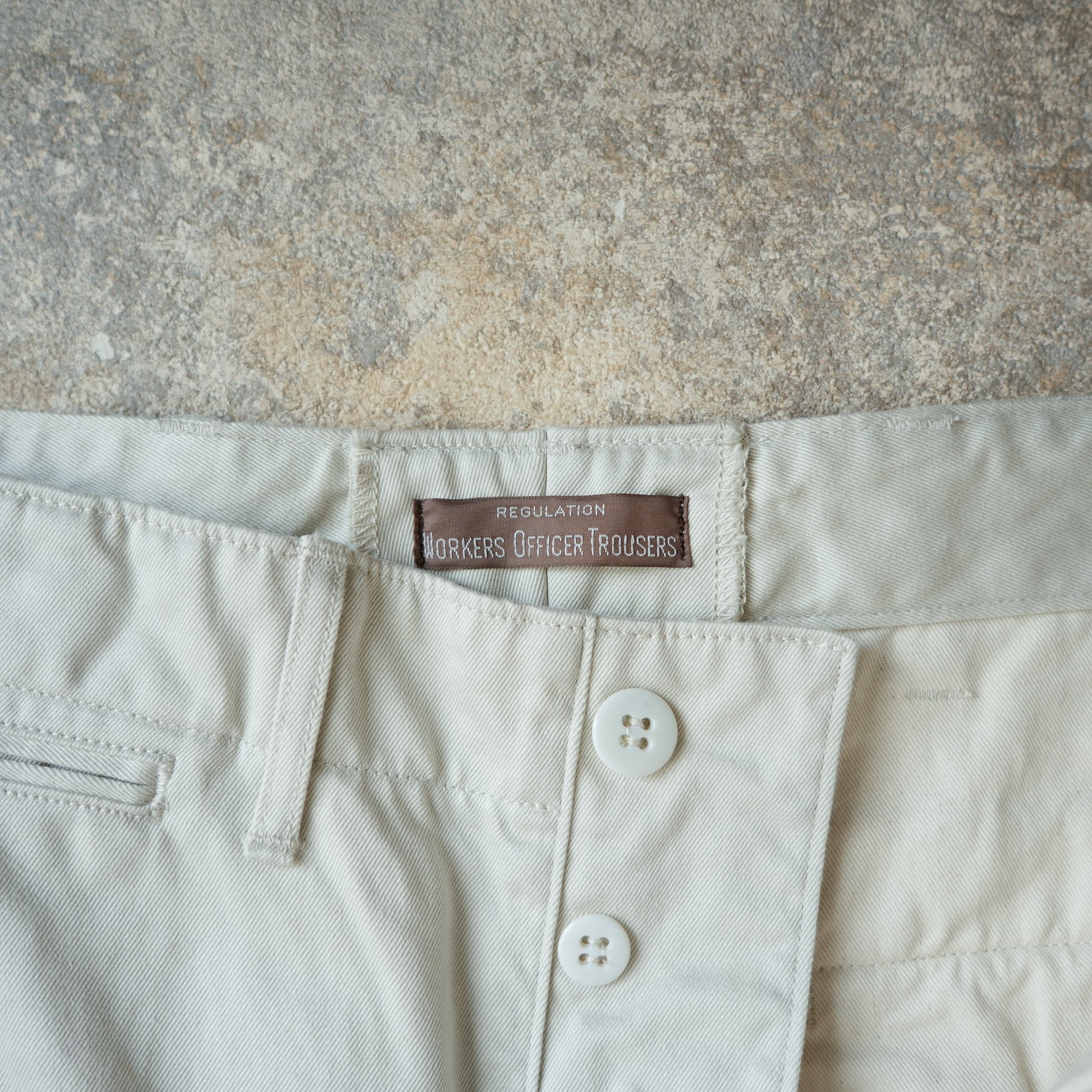 定番、と言いつつ毎シーズン微妙にシルエット、ラインナップ、仕様の変わるOfficer Trousers。いわゆる「チノパン」。